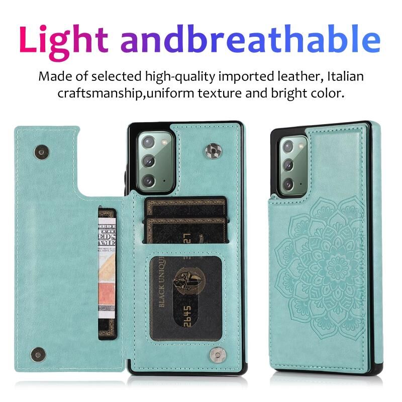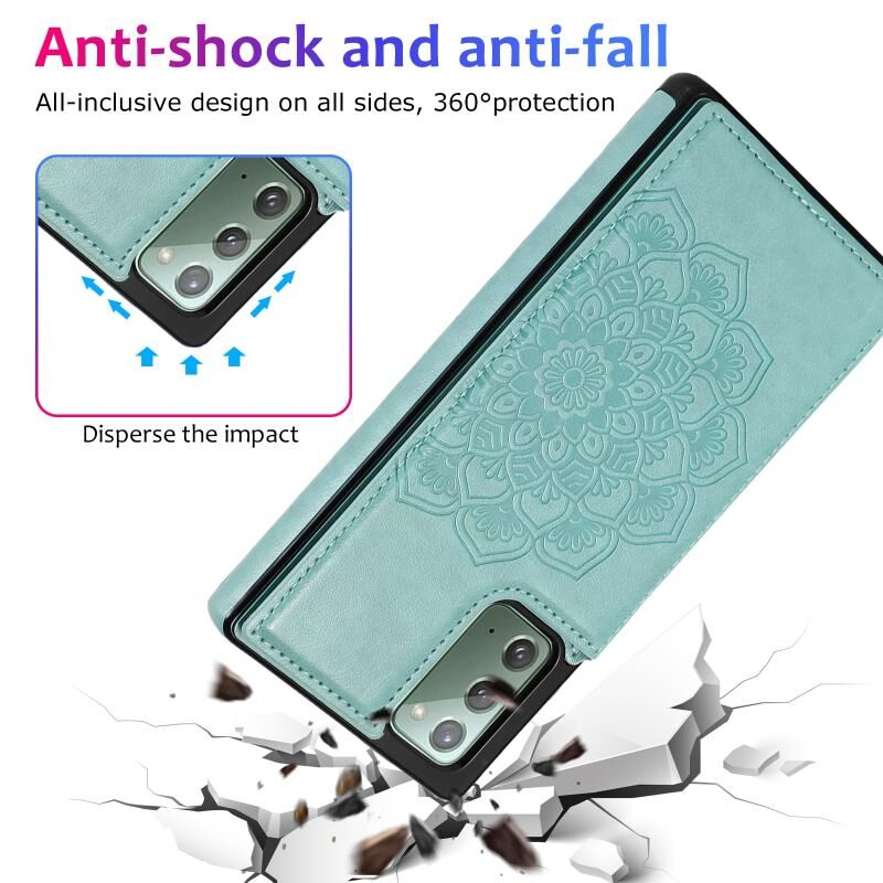 Θήκη προστασίας για Samsung Galaxy Note20 με διπλή αγκράφα, σχέδιο Mandala από PU+TPU με θήκες για κάρτες & βάση στήριξης & κορνίζα φωτογραφιών (Πράσινο)