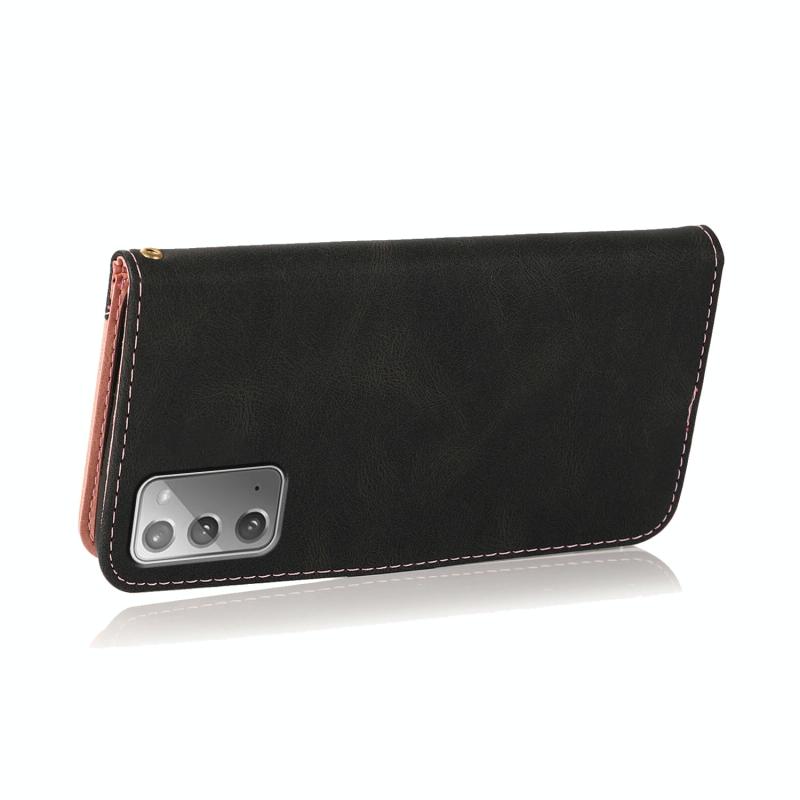 Θήκη τηλεφώνου Samsung Galaxy Note20 Δερμάτινη με διπλή ραφή (Μαύρο-Ροζ Χρυσό)