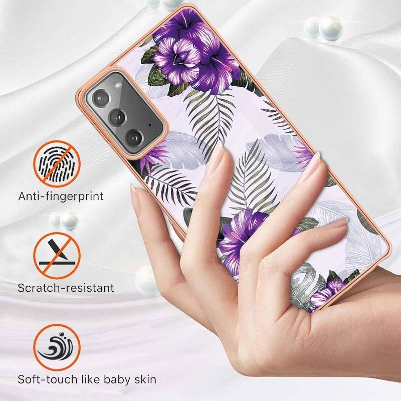 For Samsung Galaxy Note20 Electroplating IMD TPU Phone Case(Purple Flower)