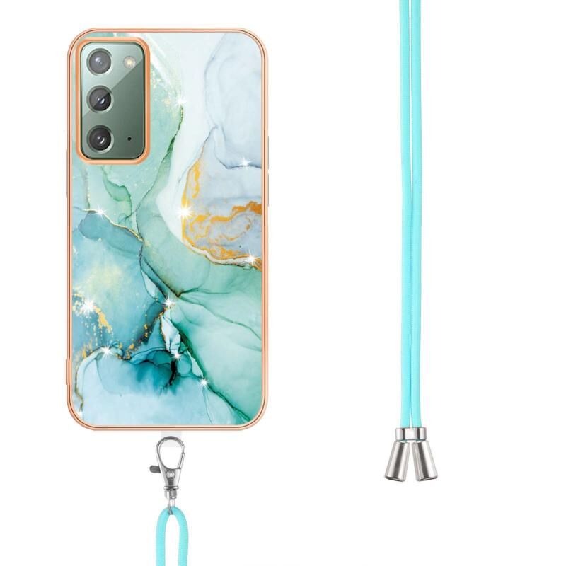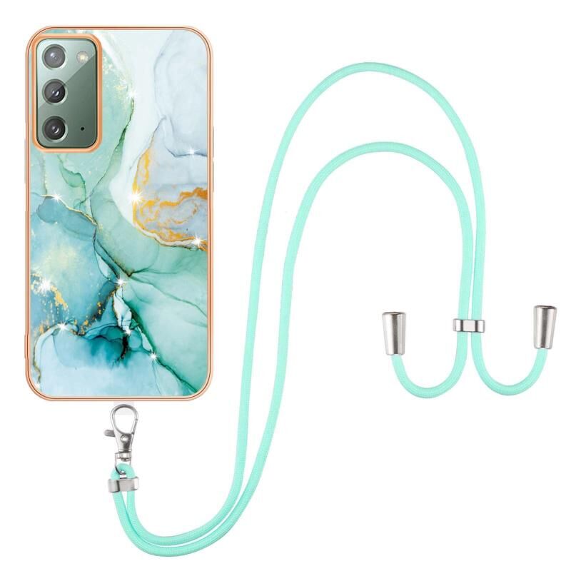 Θήκη κινητού τηλεφώνου Samsung Galaxy Note20 Electroplating Marble IMD TPU με κορδόνι (Μωβ 001)