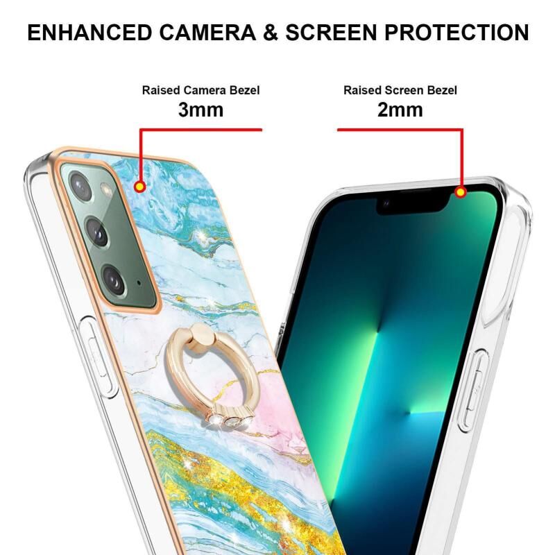 Θήκη κινητού τηλεφώνου Samsung Galaxy Note20 με ηλεκτρολυτική μαρμάρινη τεχνολογία IMD TPU και δακτύλιο στήριξης (Μωβ 001)