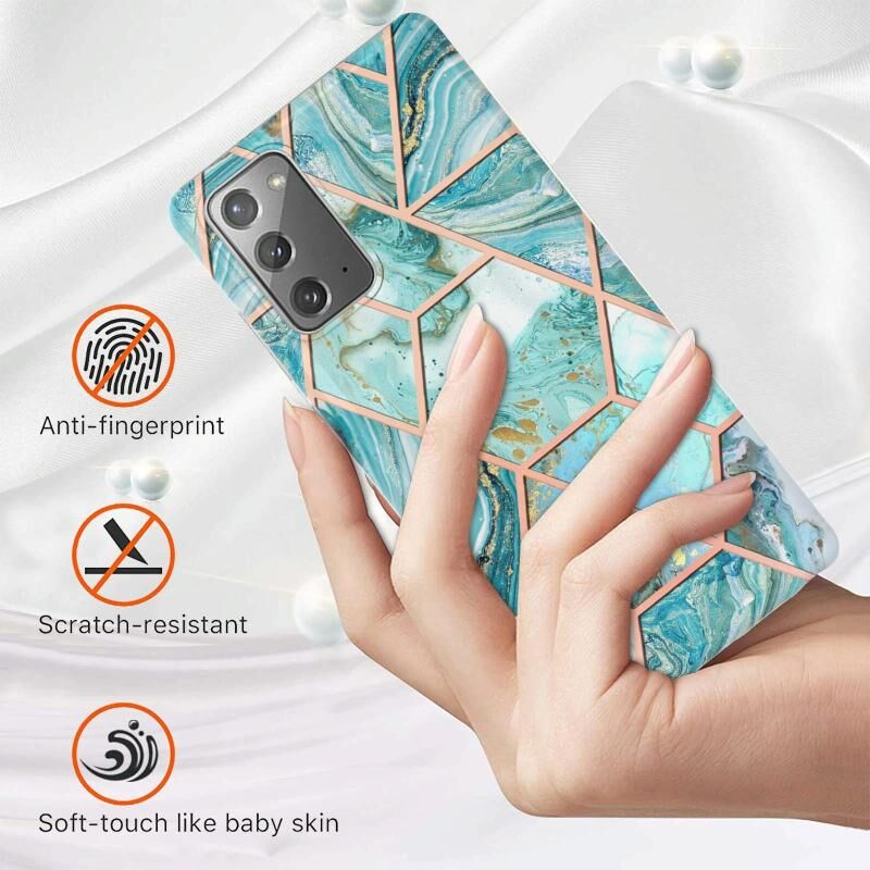 For Samsung Galaxy Note20 Electroplating Splicing Marble TPU Phone Case(Blue)