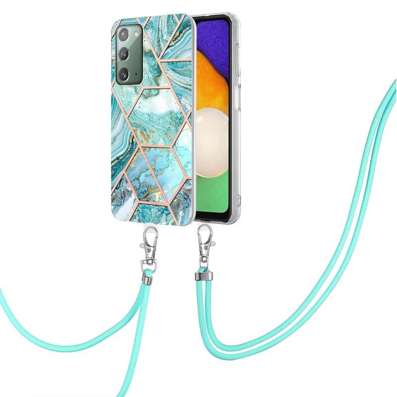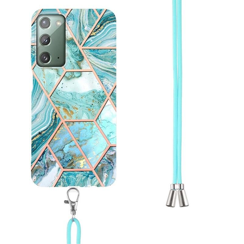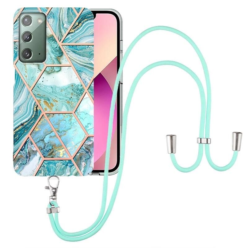 Θήκη τηλεφώνου Samsung Galaxy Note20 με ηλεκτρολυτική επιμετάλλωση, μαρμάρινη σύνθεση και TPU με κορδόνι (Σκούρο Μωβ)