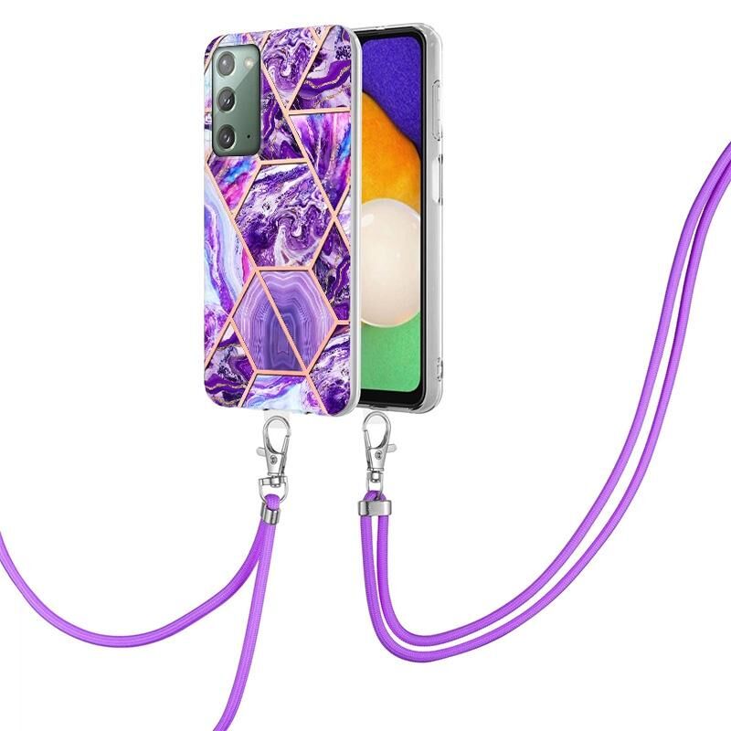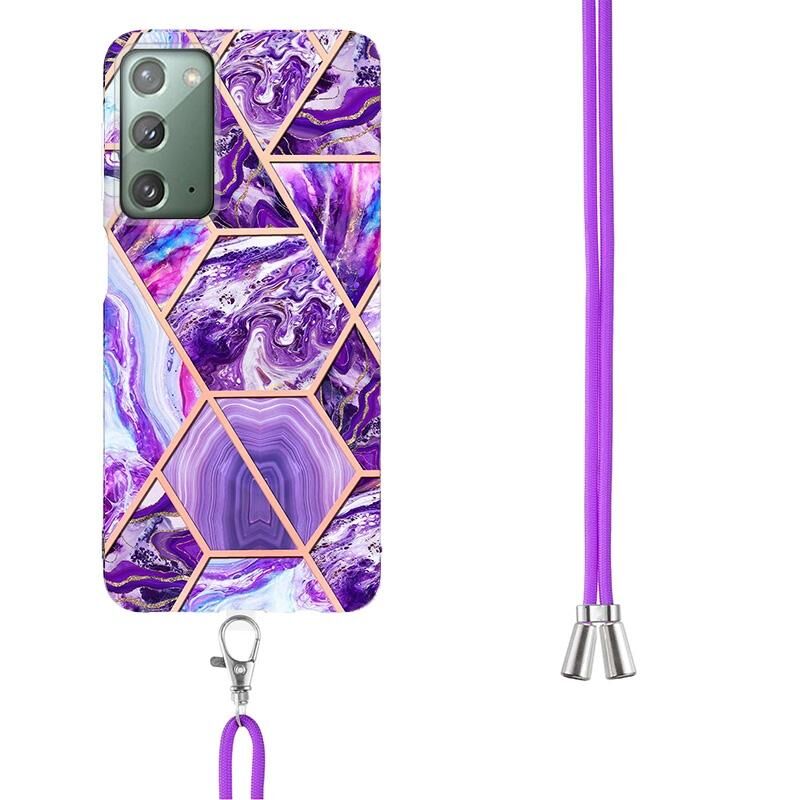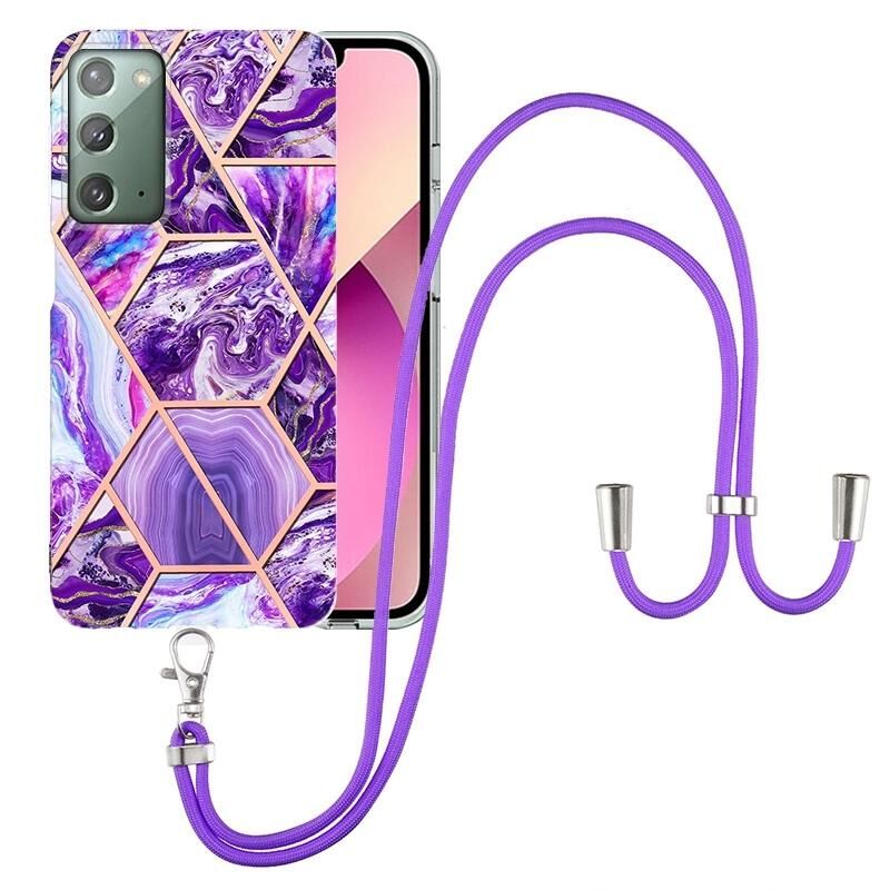 Θήκη τηλεφώνου Samsung Galaxy Note20 με ηλεκτρολυτική επιμετάλλωση, μαρμάρινη σύνθεση και TPU με κορδόνι (Σκούρο Μωβ)