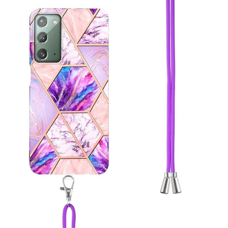 Θήκη τηλεφώνου Samsung Galaxy Note20 με ηλεκτρολυτική επιμετάλλωση, μαρμάρινη σύνθεση και TPU με κορδόνι (Σκούρο Μωβ)