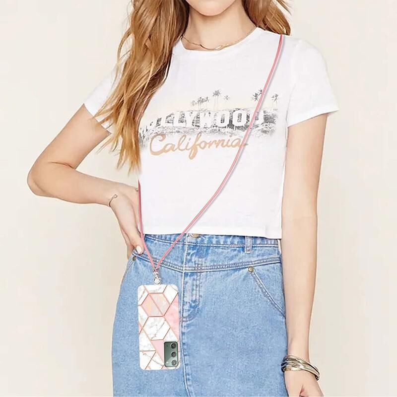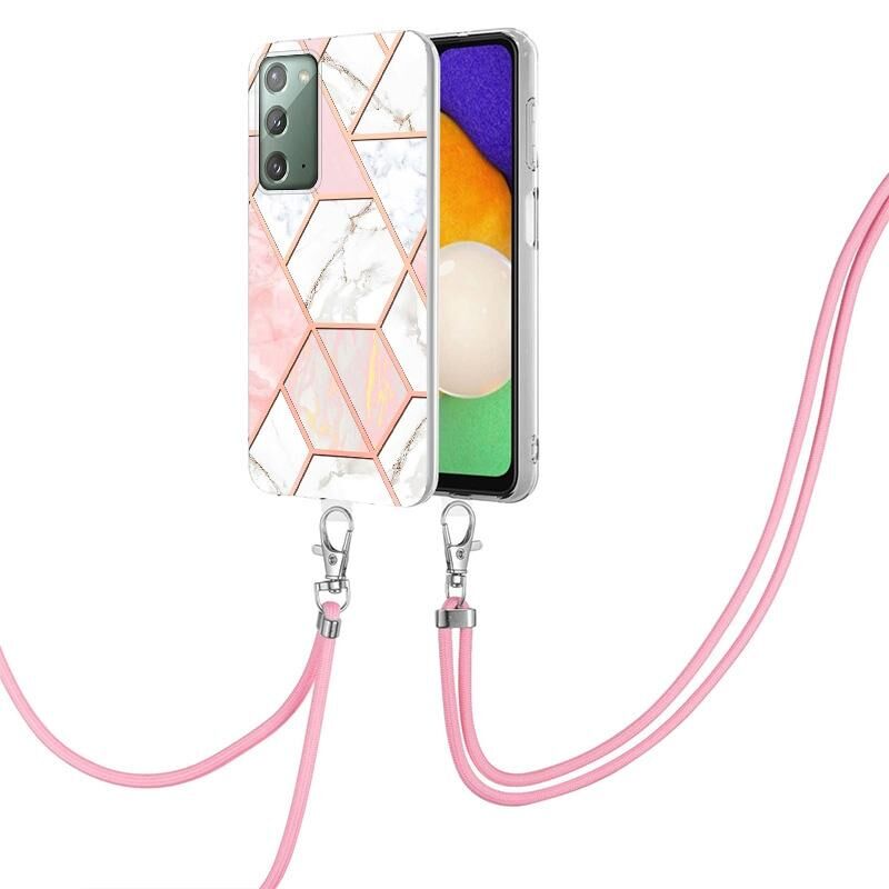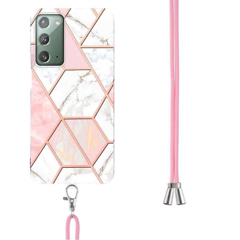 Θήκη τηλεφώνου Samsung Galaxy Note20 με ηλεκτρολυτική επιμετάλλωση, μαρμάρινη σύνθεση και TPU με κορδόνι (Σκούρο Μωβ)