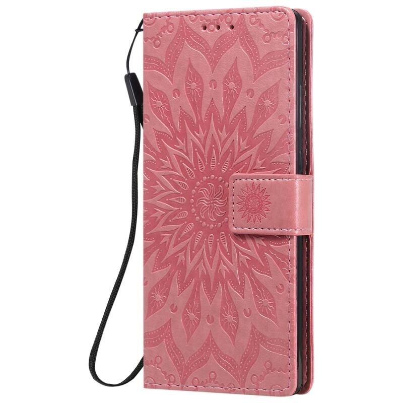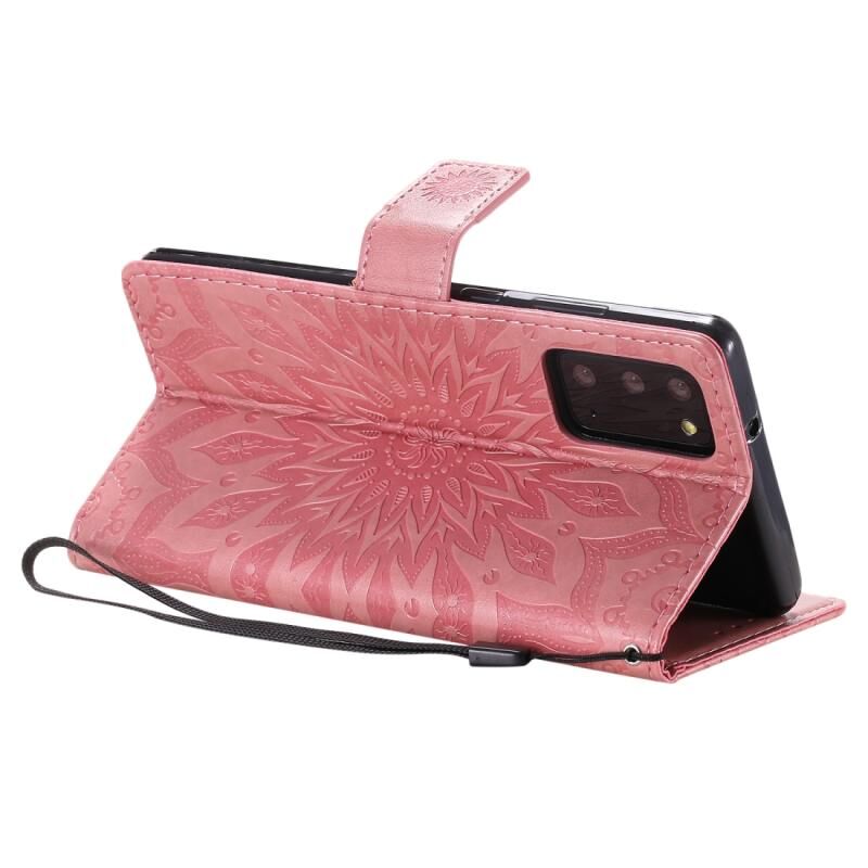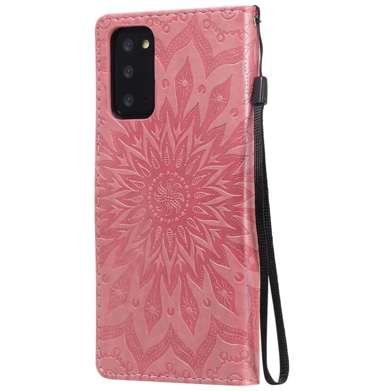 For Samsung Galaxy Note20 Embossed Sunflower Pattern Horizontal Flip PU Leather Case with Holder & Card Slots & Wallet & Lanyard(Pink)
