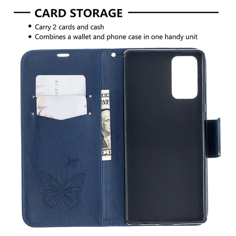Θήκη Samsung Galaxy Note20 με ανάγλυφο σχέδιο δύο πεταλούδων, οριζόντια, από δερματίνη PU με βάση, θήκη για κάρτες, πορτοφόλι και κορδόνι (Γκρι)