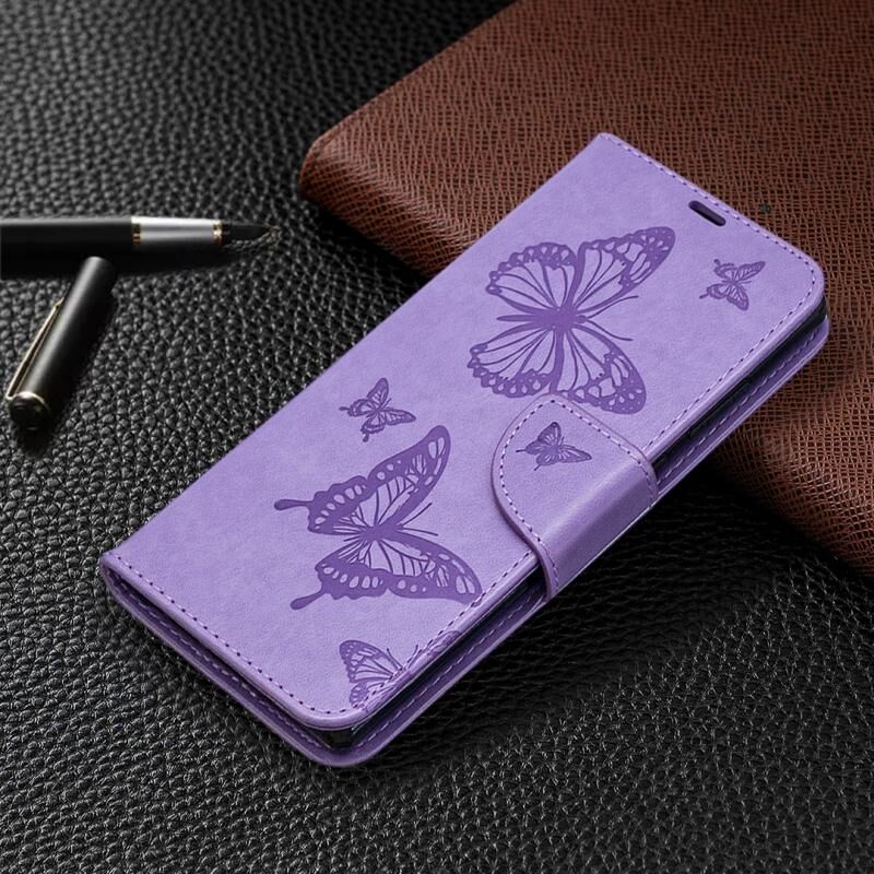 Θήκη Samsung Galaxy Note20 με ανάγλυφο σχέδιο δύο πεταλούδων, οριζόντια, από δερματίνη PU με βάση, θήκη για κάρτες, πορτοφόλι και κορδόνι (Γκρι)