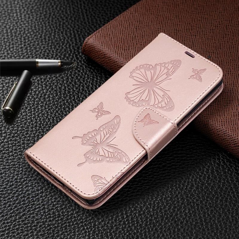 Θήκη Samsung Galaxy Note20 με ανάγλυφο σχέδιο δύο πεταλούδων, οριζόντια, από δερματίνη PU με βάση, θήκη για κάρτες, πορτοφόλι και κορδόνι (Γκρι)