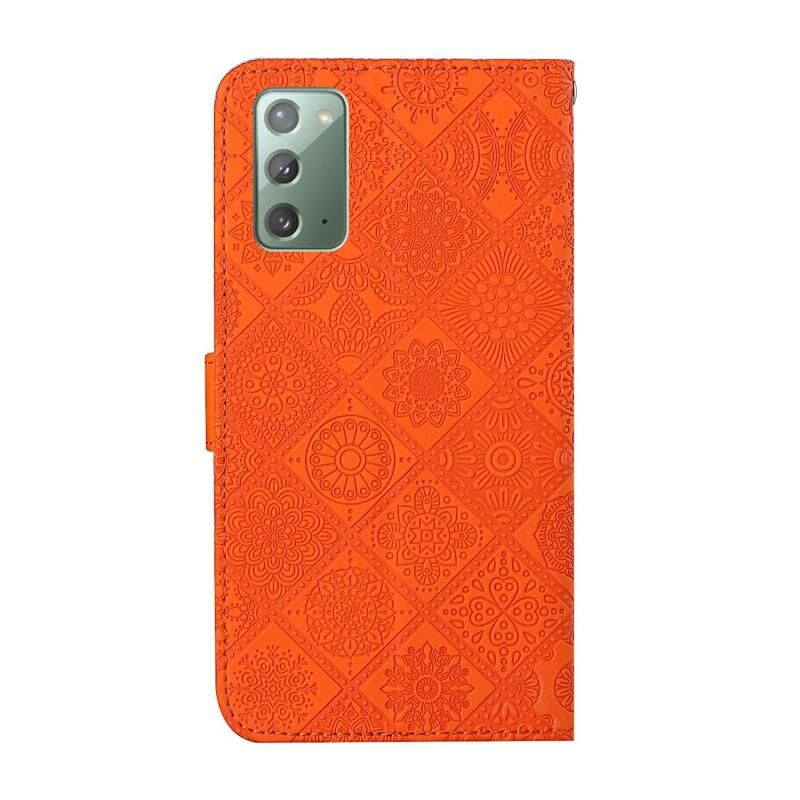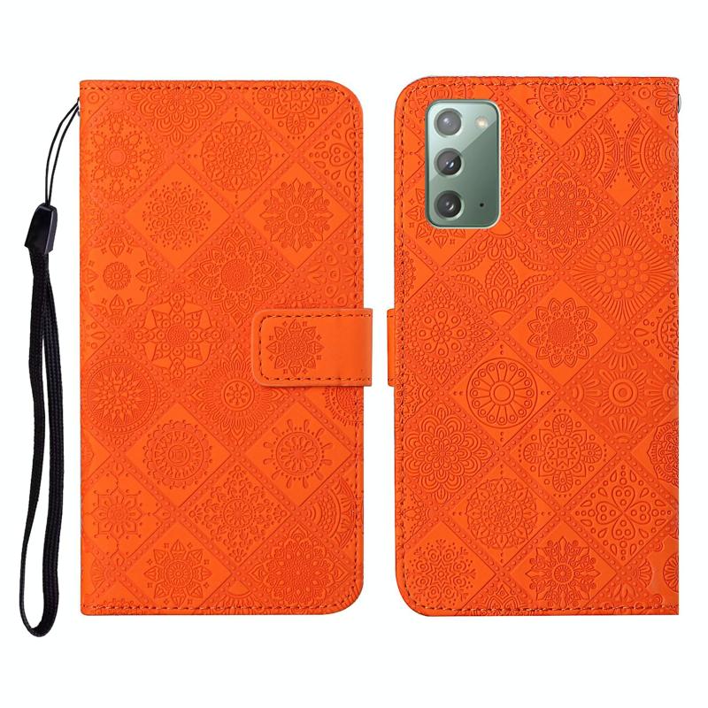 For Samsung Galaxy Note20 Ethnic Style Embossed Pattern Horizontal Flip Leather Case with Holder & Card Slots & Wallet & Lanyard(Orange)