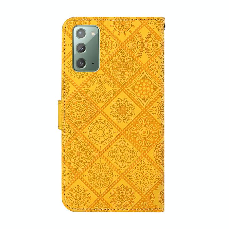 For Samsung Galaxy Note20 Ethnic Style Embossed Pattern Horizontal Flip Leather Case with Holder & Card Slots & Wallet & Lanyard(Yellow)