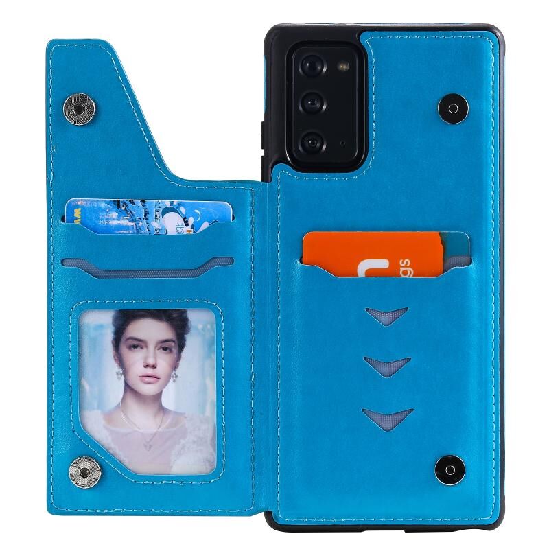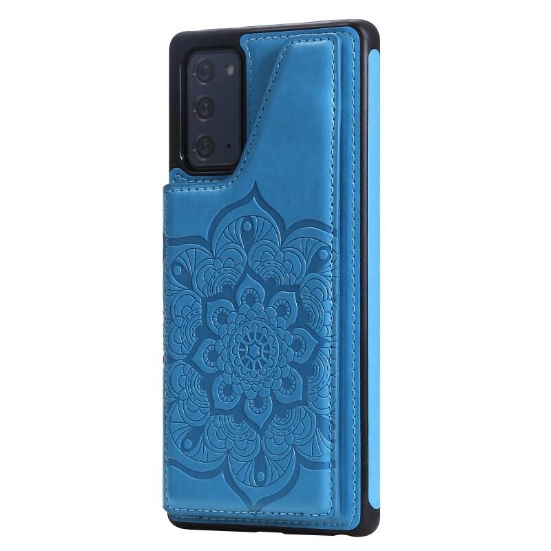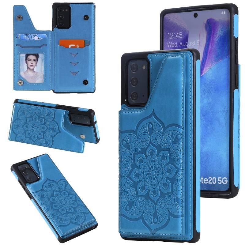 Για Samsung Galaxy Note20 λουλούδι ανάγλυφο μοτίβο Shockproof προστατευτική θήκη με θήκη & υποδοχές για κάρτες & πλαίσιο φωτογραφιών (μπλε)