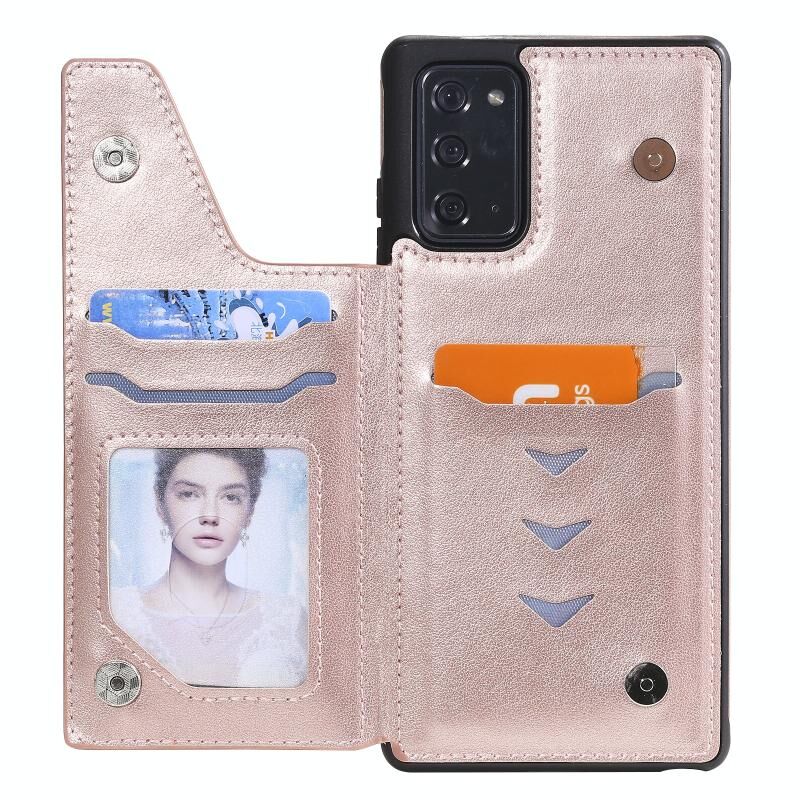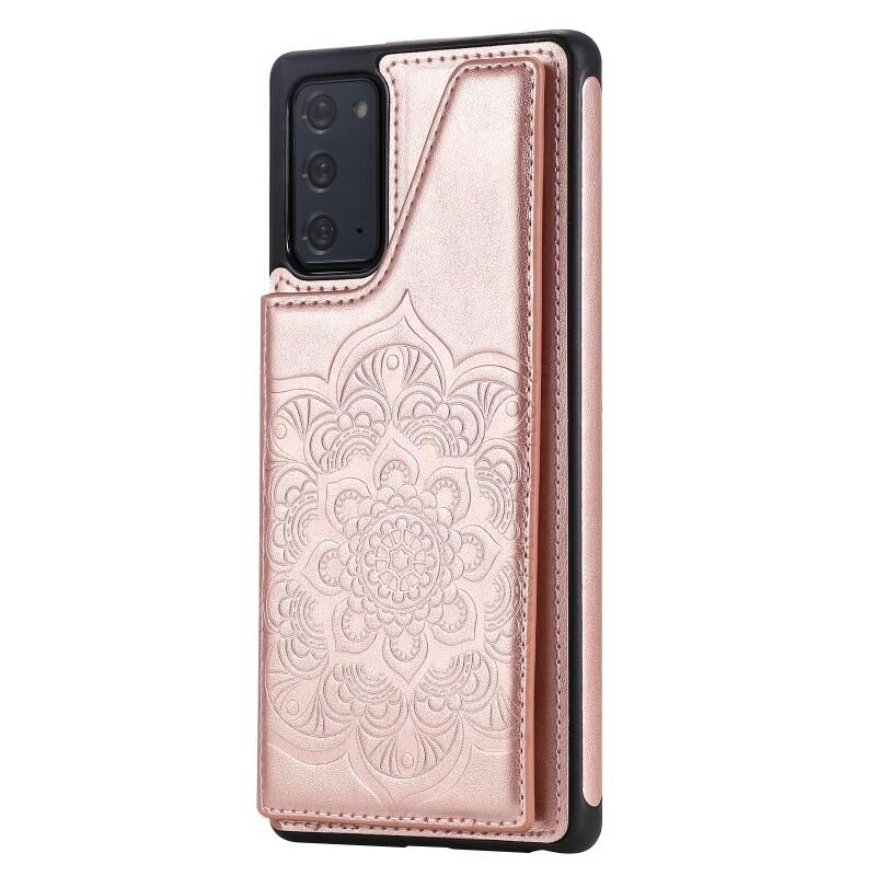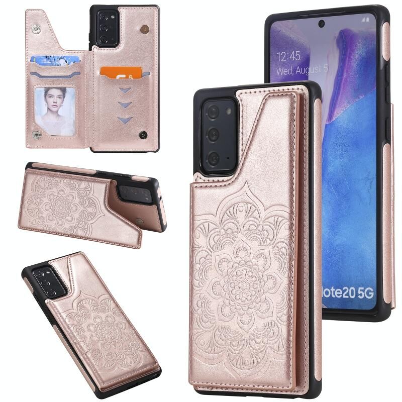 Για Samsung Galaxy Note20 λουλούδι ανάγλυφο μοτίβο Shockproof προστατευτική θήκη με θήκη & υποδοχές για κάρτες & πλαίσιο φωτογραφιών (Rose Gold)
