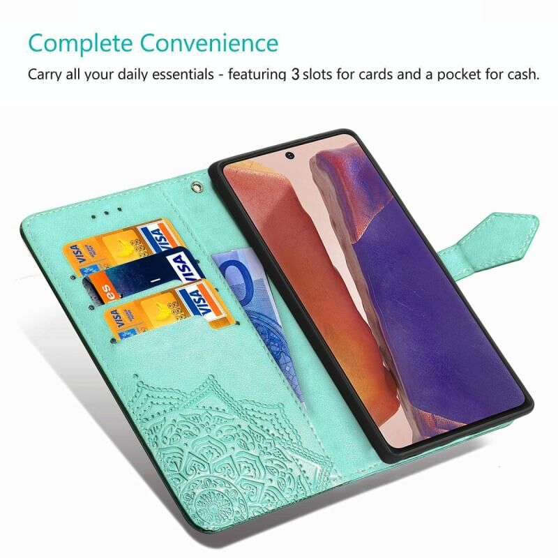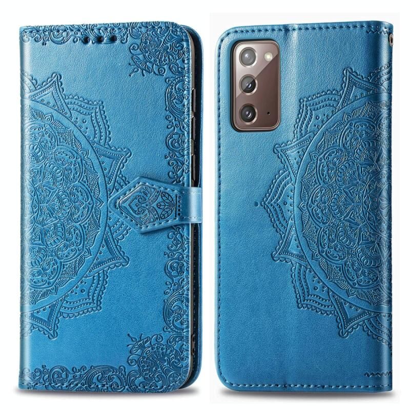 Για Samsung Galaxy Note20 Halfway Mandala ανάγλυφο μοτίβο οριζόντια Flip δερμάτινη θήκη με θήκη & υποδοχές για κάρτες & πορτοφόλι & κορδόνι (μπλε)