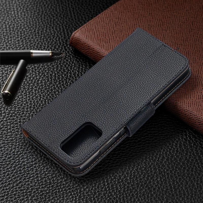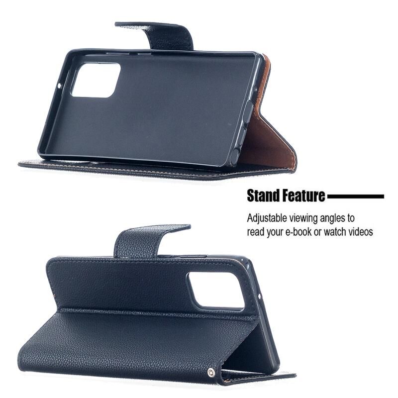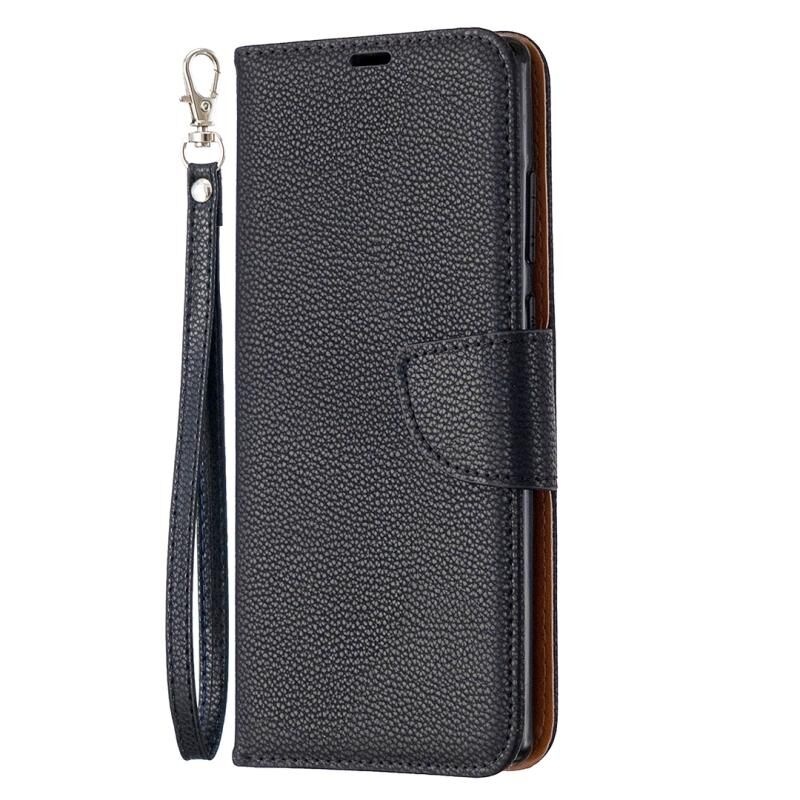 Για Samsung Galaxy Note20 Litchi υφή καθαρό χρώμα οριζόντια Flip δερμάτινη θήκη με θήκη & υποδοχές για κάρτες & πορτοφόλι & κορδόνι (μαύρο)