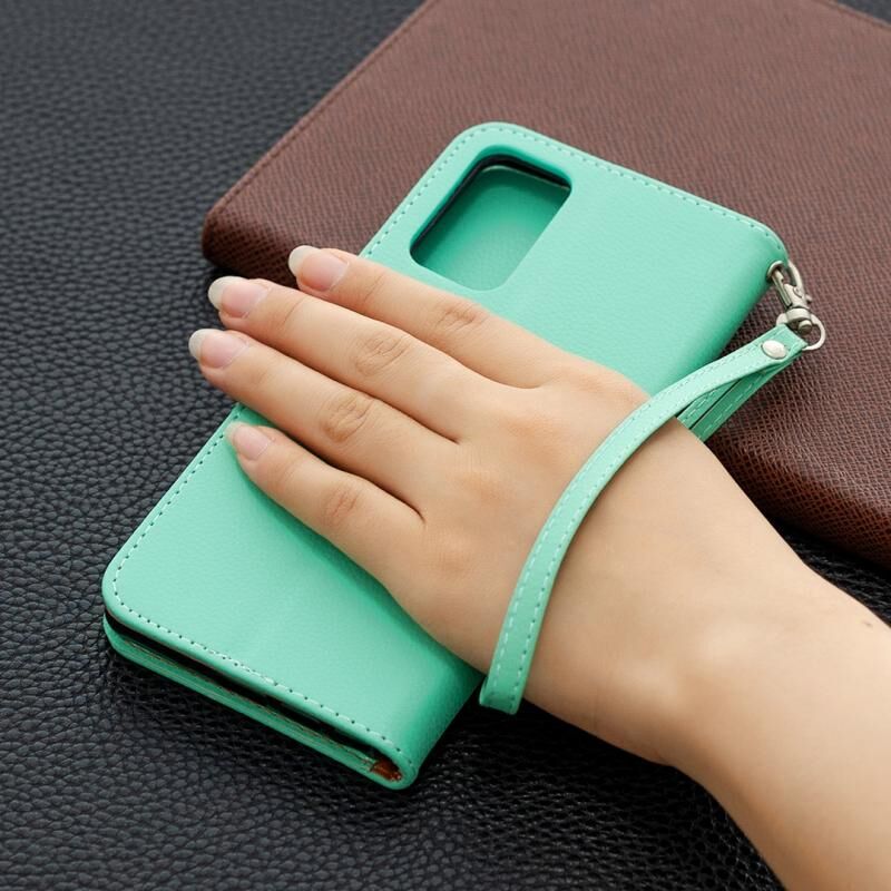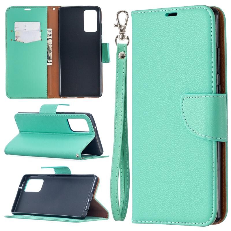 Για Samsung Galaxy Note20 Litchi υφή καθαρό χρώμα οριζόντια Flip δερμάτινη θήκη με θήκη & υποδοχές για κάρτες & πορτοφόλι & κορδόνι (πράσινο)
