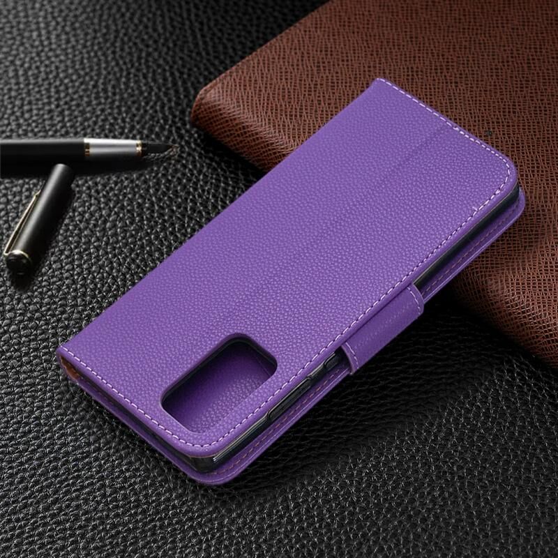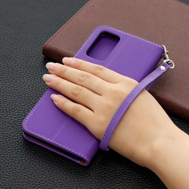 Για Samsung Galaxy Note20 Litchi υφή καθαρό χρώμα οριζόντια Flip δερμάτινη θήκη με θήκη & υποδοχές για κάρτες & πορτοφόλι & κορδόνι (μωβ)