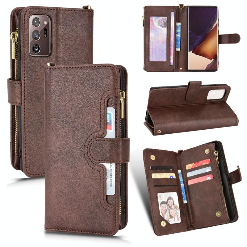 Για Samsung Galaxy Note20 Litchi υφή φερμουάρ δερμάτινη θήκη τηλεφώνου (καφέ)