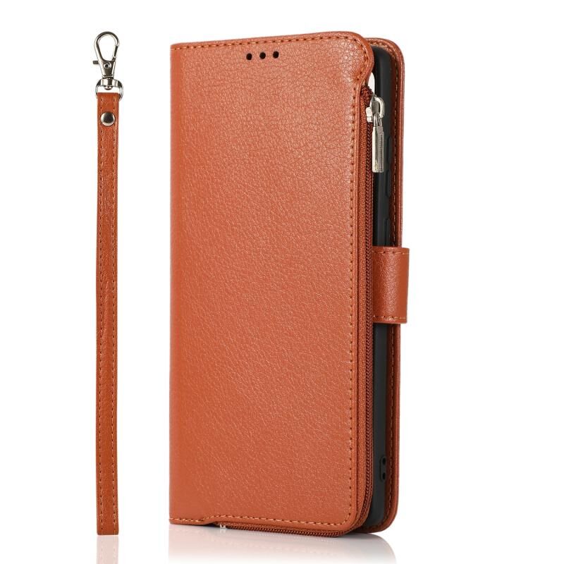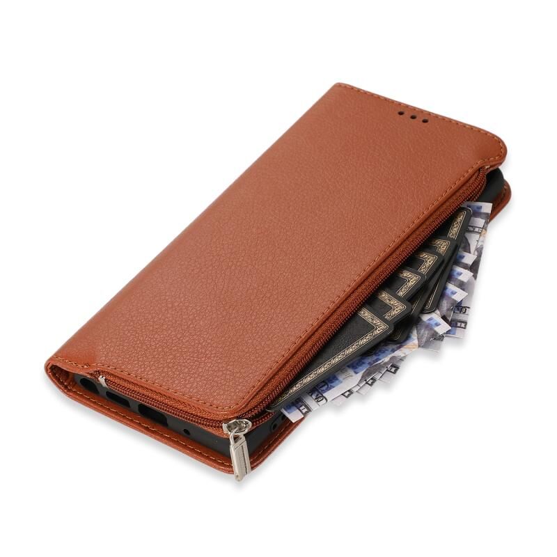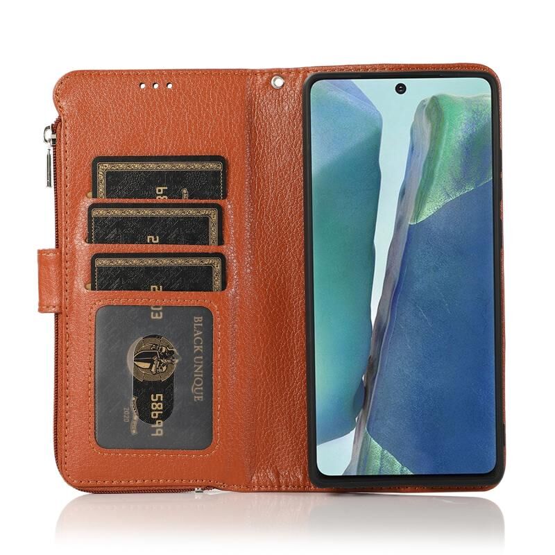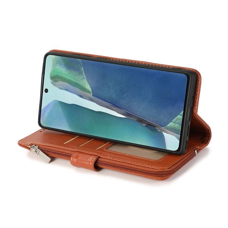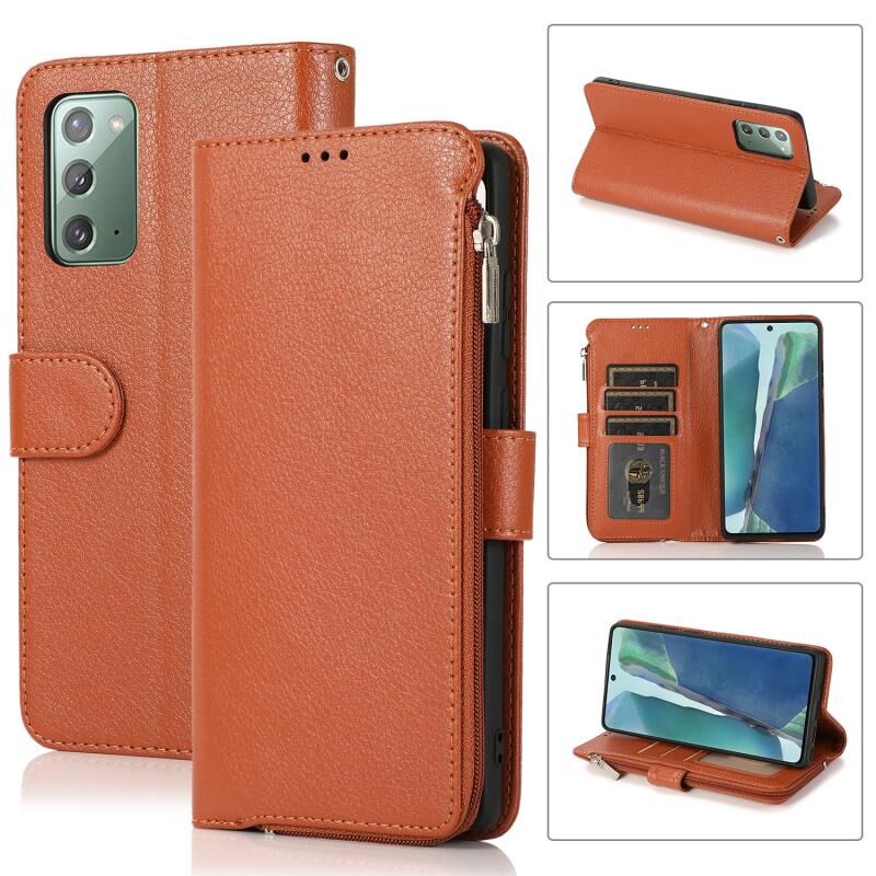 Για Samsung Galaxy Note20 Microfiber φερμουάρ οριζόντια Flip δερμάτινη θήκη (καφέ)
