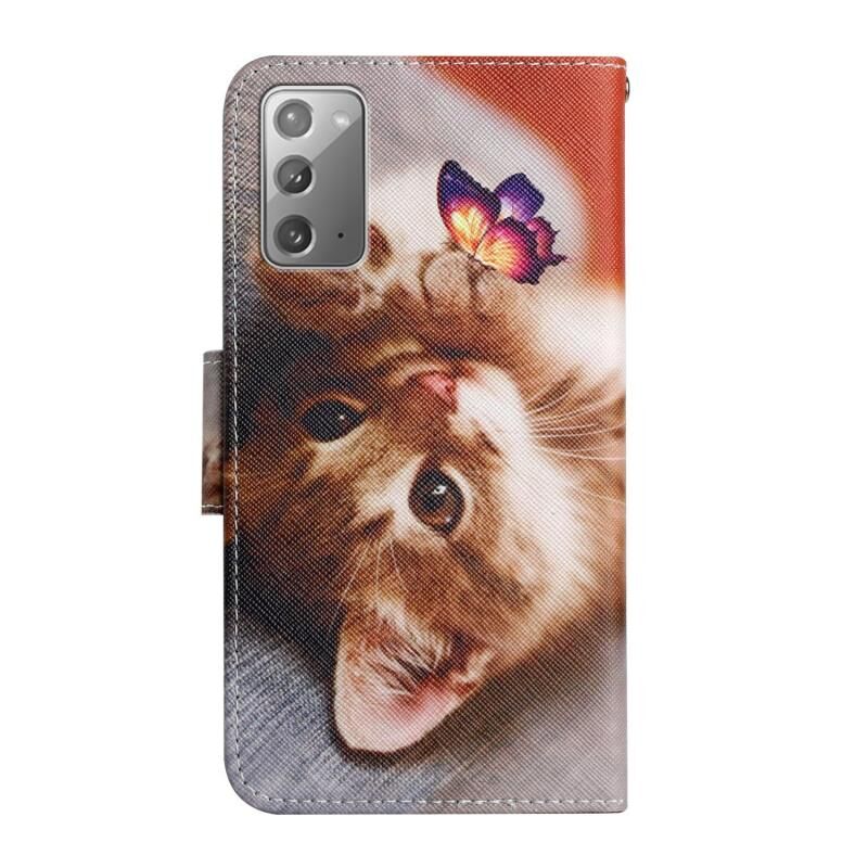 Θήκη δέρματος οριζόντιας αναδίπλωσης με σχέδιο ζωγραφικής για Samsung Galaxy Note20 με βάση & υποδοχή κάρτας & πορτοφόλι (Πεταλούδα Γάτα)