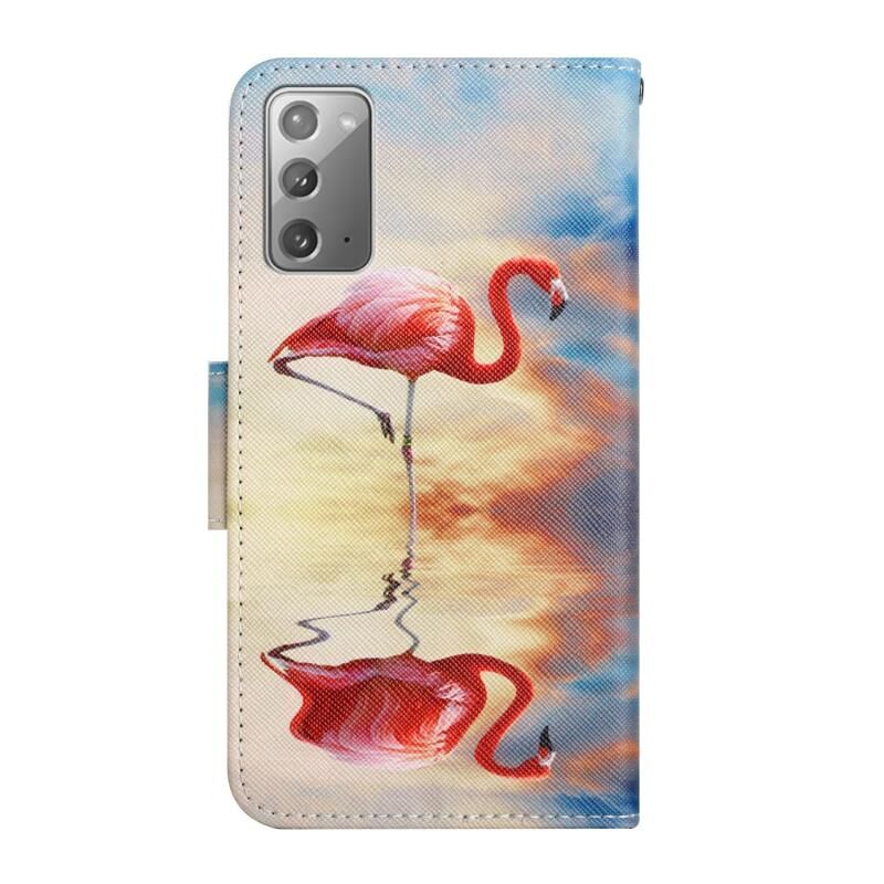 Θήκη δέρματος οριζόντιας αναδίπλωσης με σχέδιο ζωγραφικής για Samsung Galaxy Note20 με βάση & υποδοχή κάρτας & πορτοφόλι (Φλαμίνγκο)
