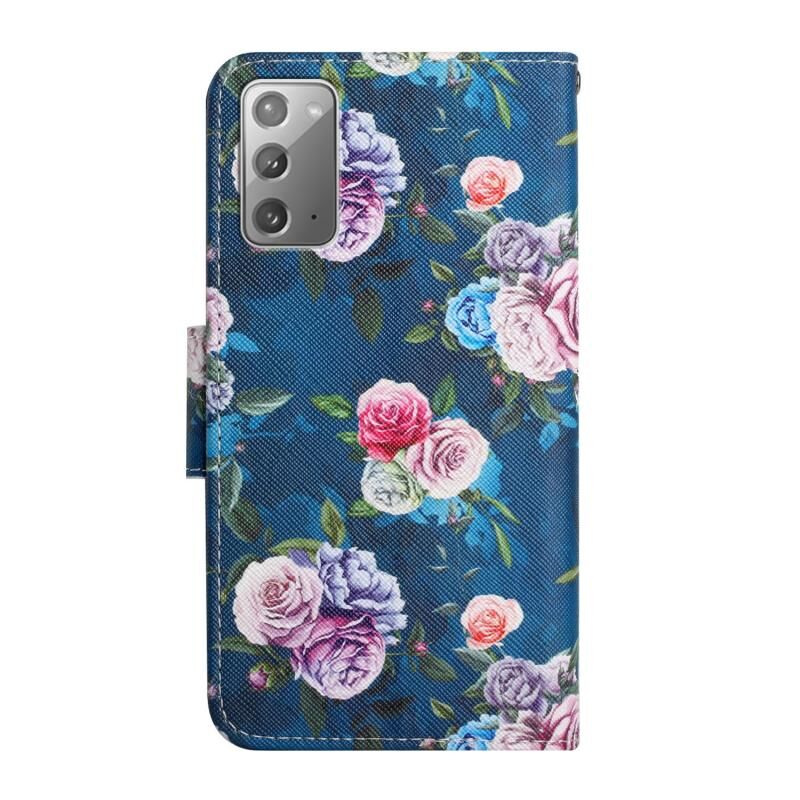 Θήκη δέρματος οριζόντιας αναδίπλωσης με σχέδιο ζωγραφικής για Samsung Galaxy Note20 με βάση & υποδοχή κάρτας & πορτοφόλι (Φωτεινό Ρόδο)