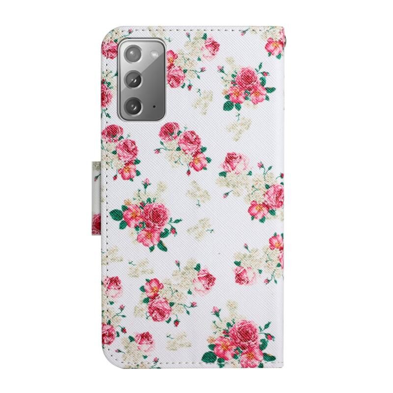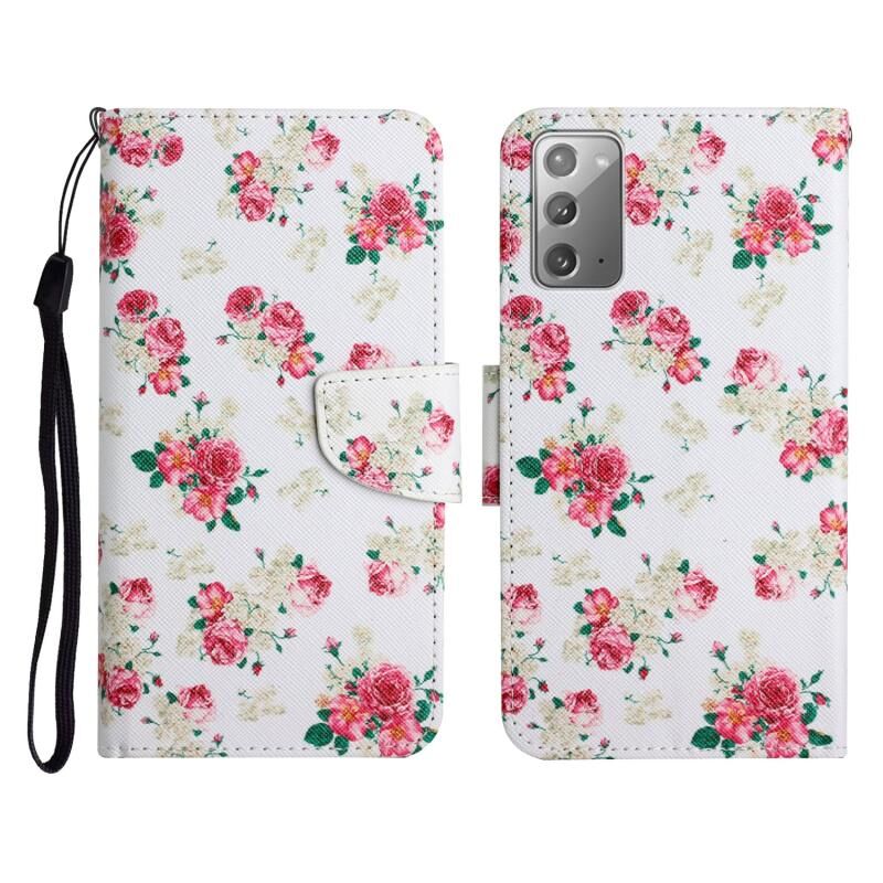Θήκη δέρματος οριζόντιας αναδίπλωσης με σχέδιο ζωγραφικής για Samsung Galaxy Note20 με βάση & υποδοχή κάρτας & πορτοφόλι (Κόκκινο Λουλούδι)