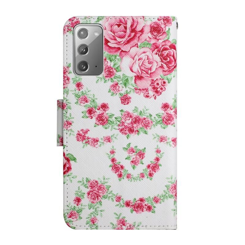 Θήκη δέρματος οριζόντιας αναδίπλωσης με σχέδιο ζωγραφικής για Samsung Galaxy Note20 με βάση & υποδοχή κάρτας & πορτοφόλι (Τριαντάφυλλο)