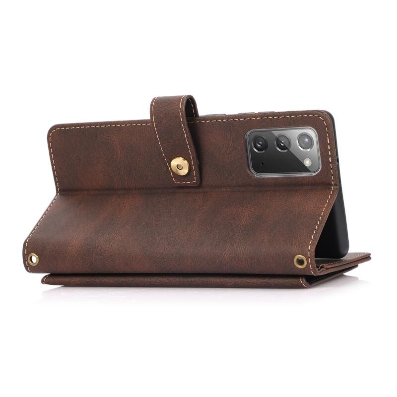 Για Samsung Galaxy Note20 PU + TPU Οριζόντια Flip δερμάτινη θήκη με θήκη & υποδοχή για κάρτες & πορτοφόλι & κορδόνι (καφέ)