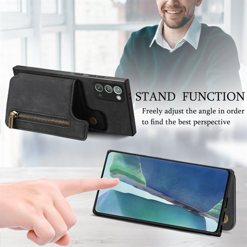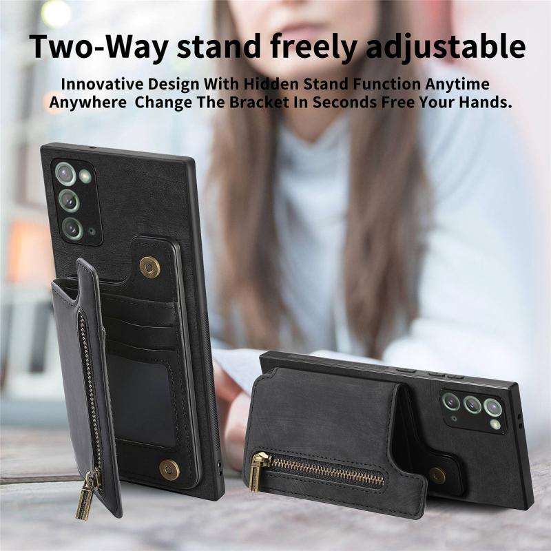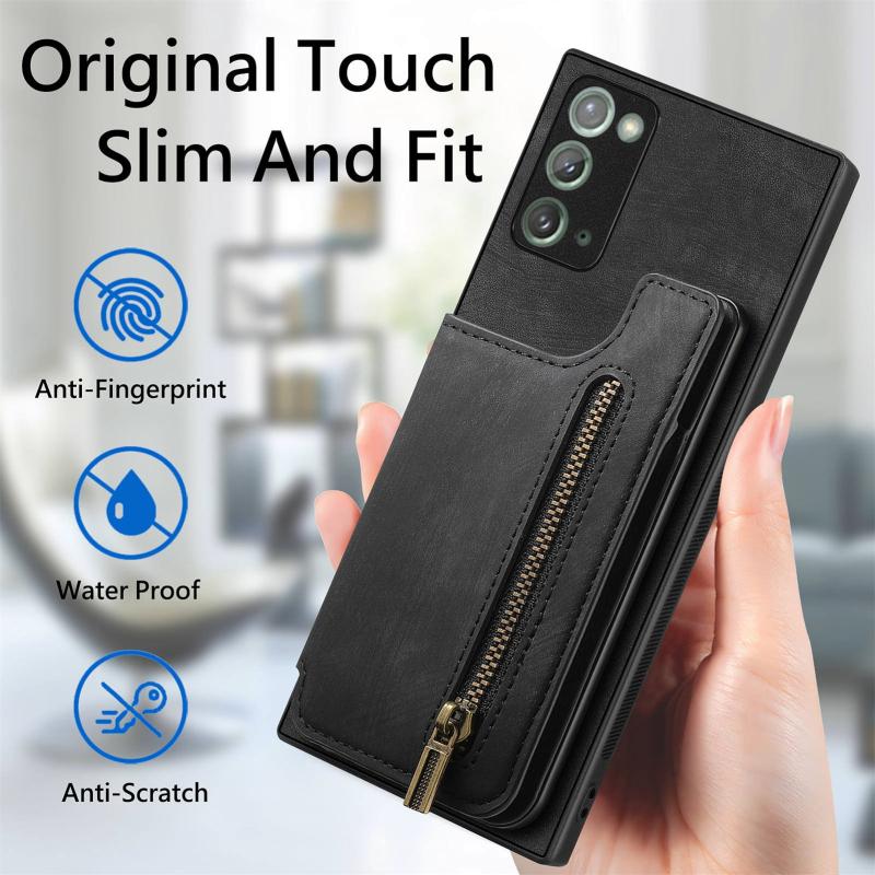 2. Λειτουργία Πορτοφολιού με Φερμουάρ: Η δερμάτινη θήκη είναι εξοπλισμένη με υποδοχές για κάρτες για την τοποθέτηση καρτών και ενός μικρού ποσού μετρητών.
