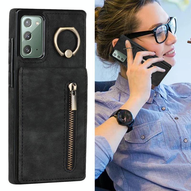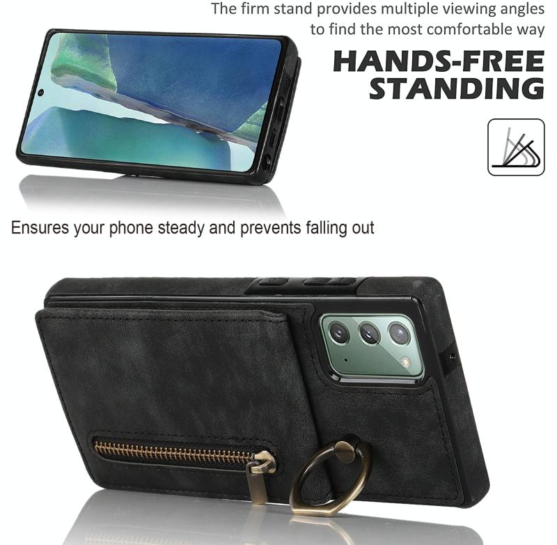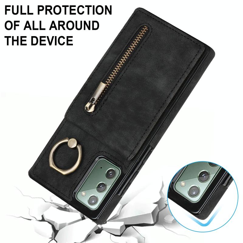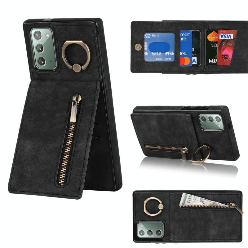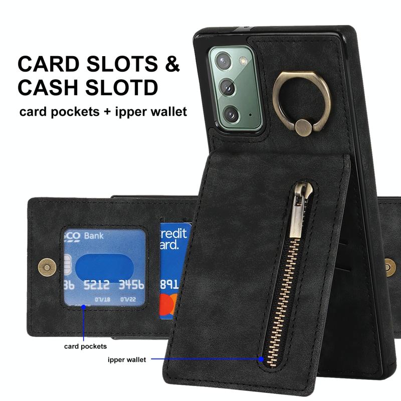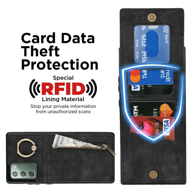 Θήκη κινητού τηλεφώνου Samsung Galaxy Note20 Retro με δακτύλιο και θήκη καρτών RFID με φερμουάρ (Κρασί)