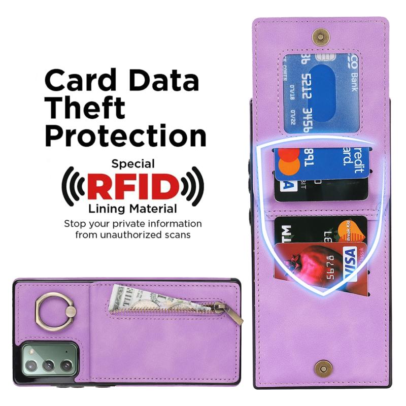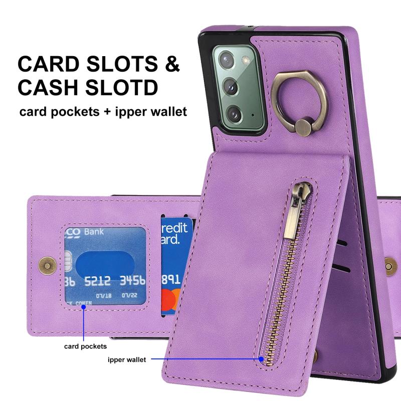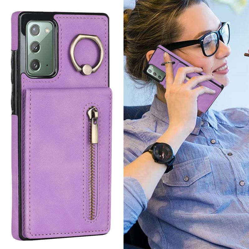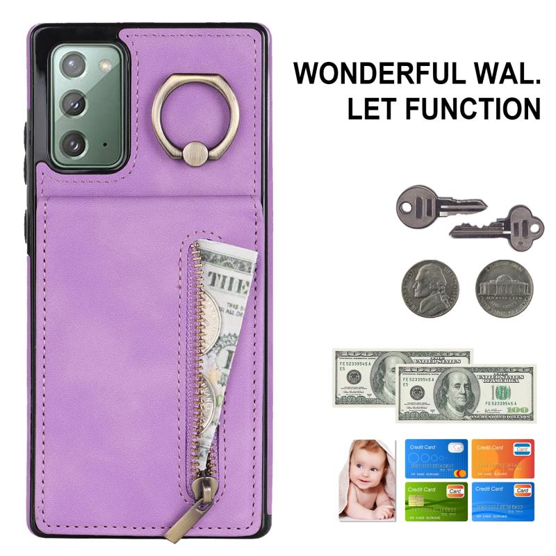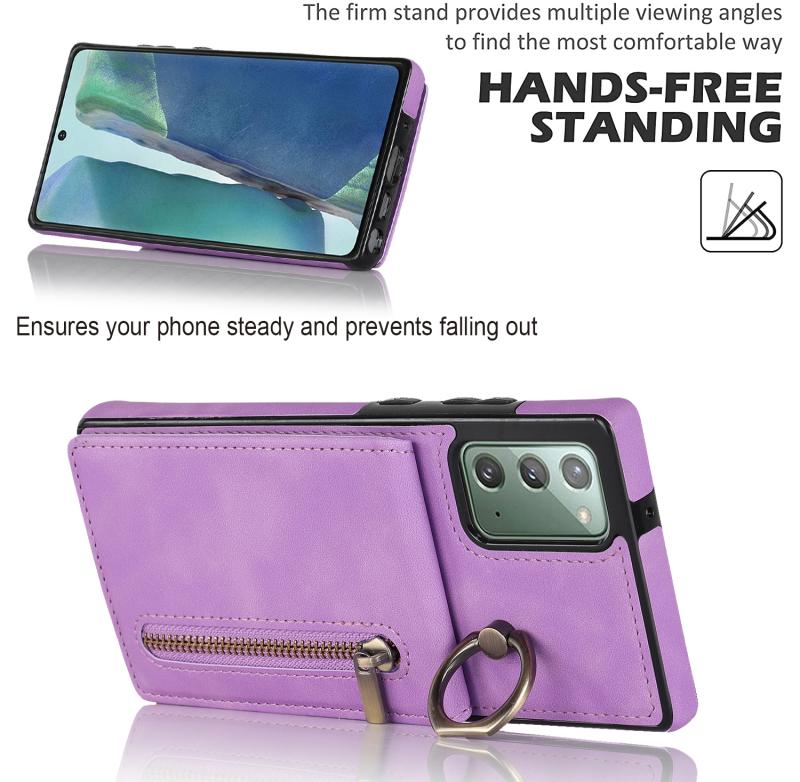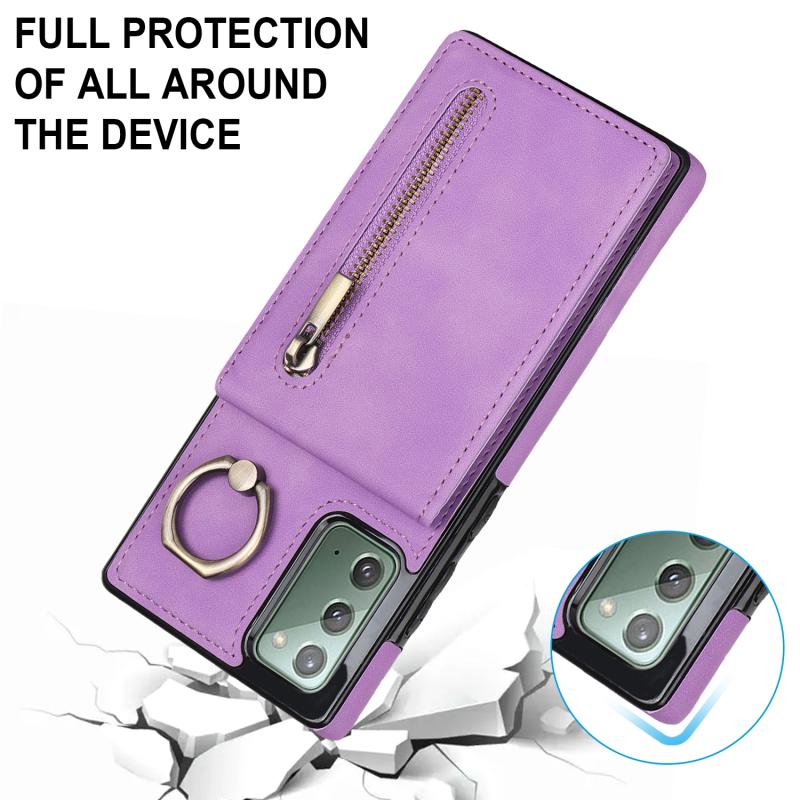 Θήκη κινητού τηλεφώνου Samsung Galaxy Note20 Retro με δακτύλιο και θήκη καρτών RFID με φερμουάρ (Καφέ)