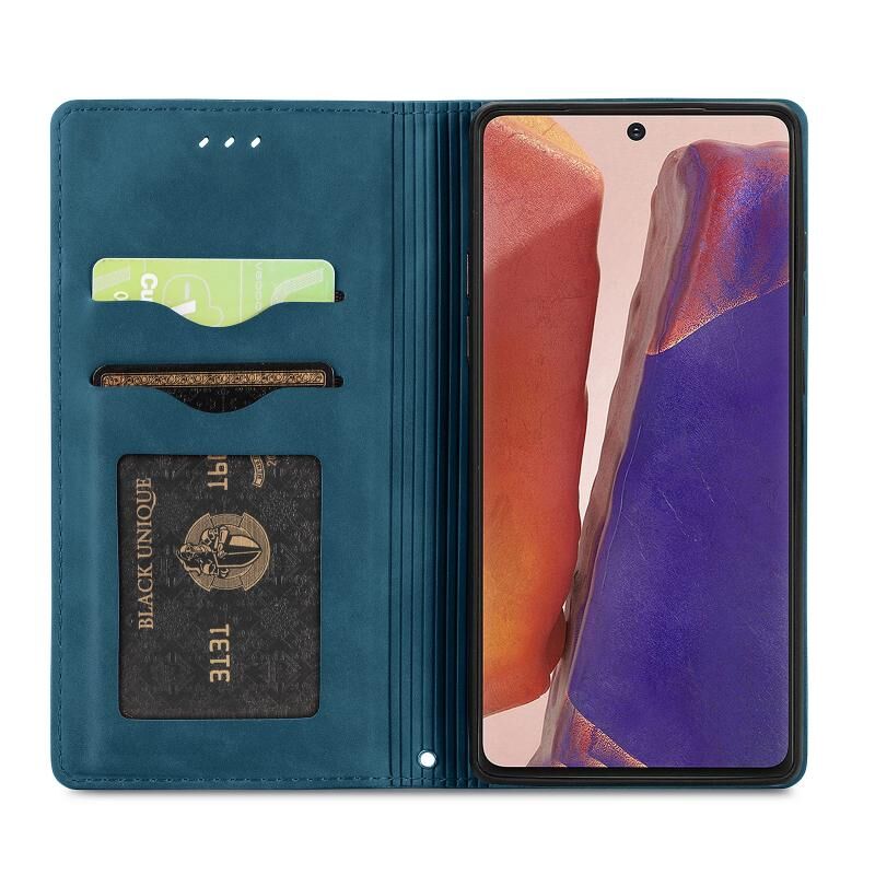 Για Samsung Galaxy Note20 Ρετρό δέρμα Feel Business μαγνητική οριζόντια Flip δερμάτινη θήκη με κάτοχο & υποδοχές για κάρτες & πορτοφόλι & πλαίσιο φωτογραφιών (μπλε)