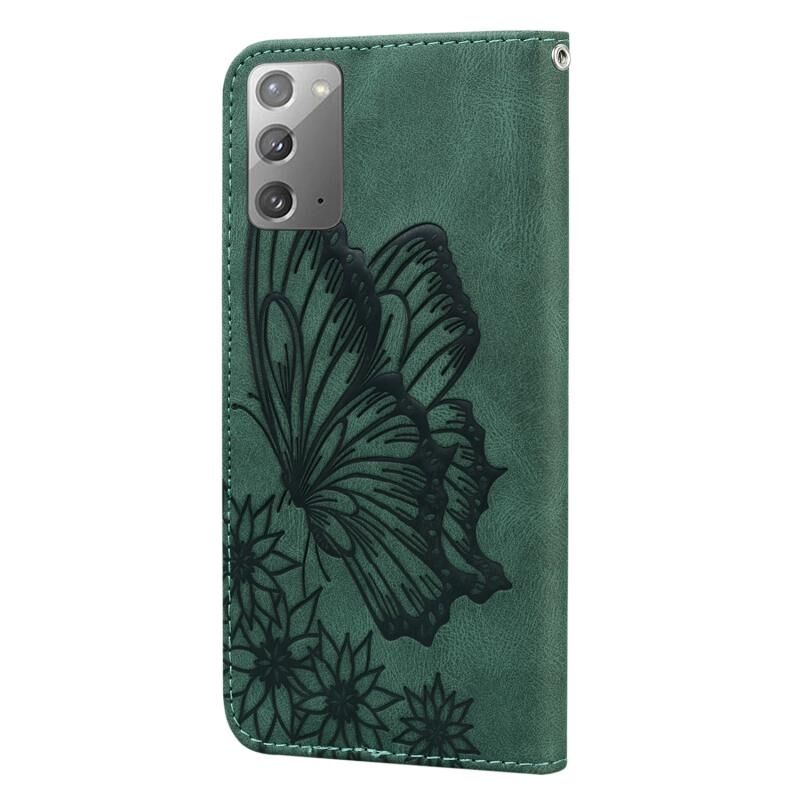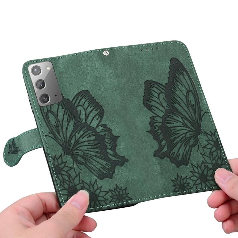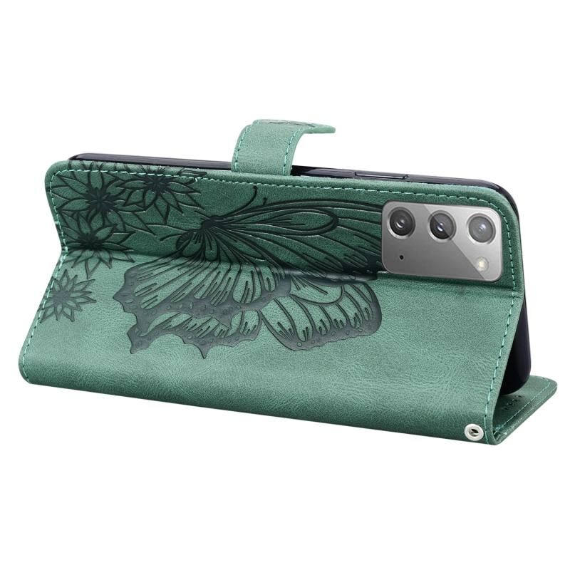Θήκη Samsung Galaxy Note20 Retro με υφή δέρματος, ανάγλυφα σχέδια πεταλούδων, οριζόντια, από δέρμα με βάση για κάρτες & πορτοφόλι (Καφέ)