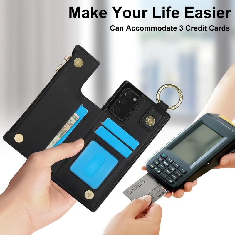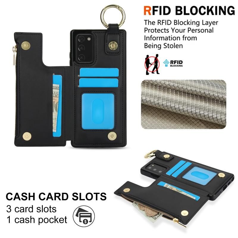 Για Samsung Galaxy Note20 RFlD Anti-theft Διπλό πόρπη δαχτυλίδι φερμουάρ κάρτα τηλέφωνο υπόθεση (μαύρο)