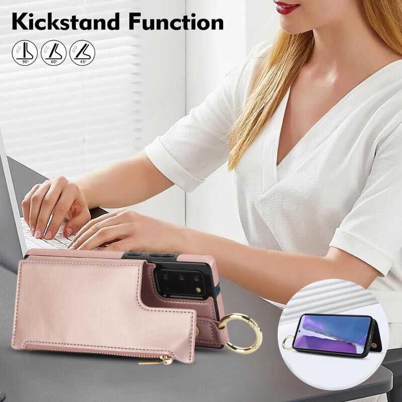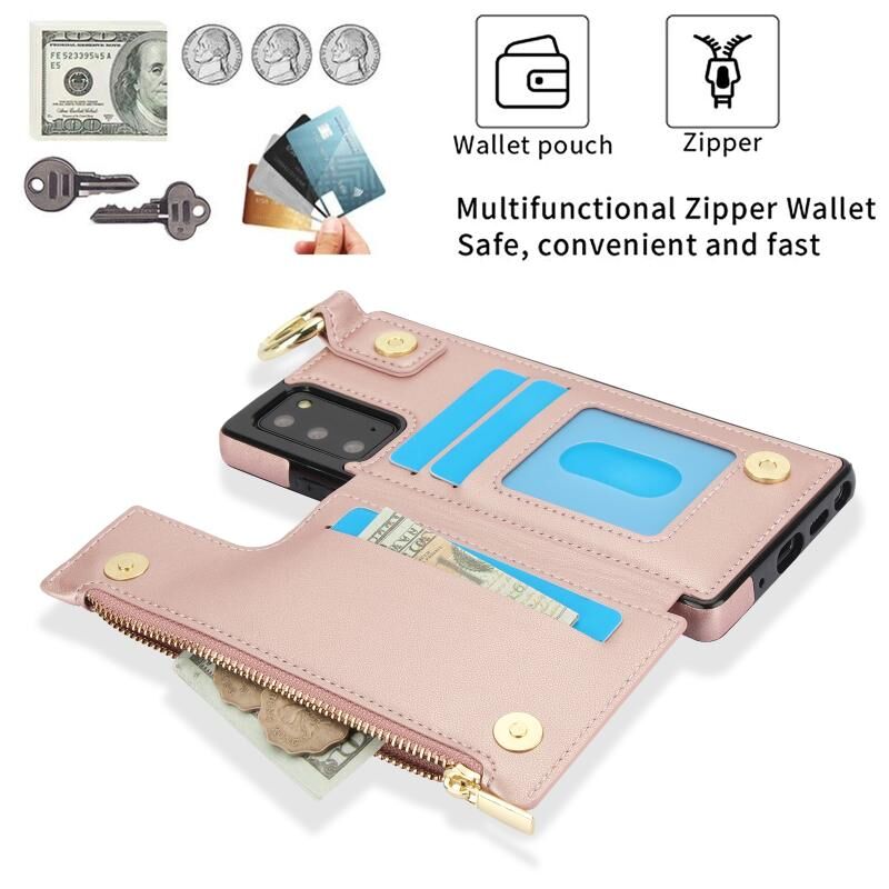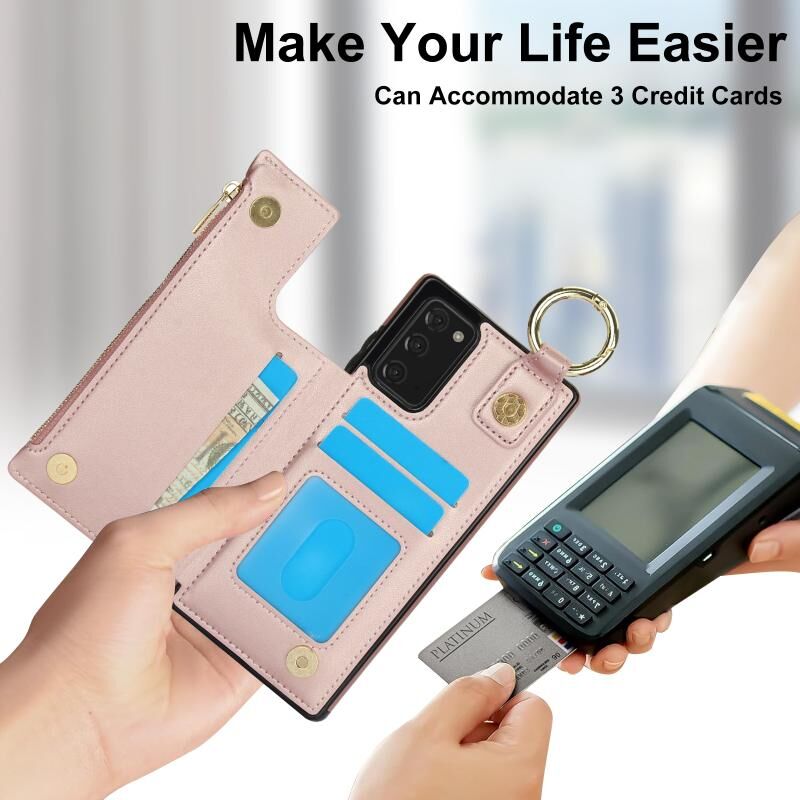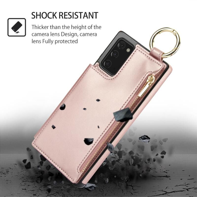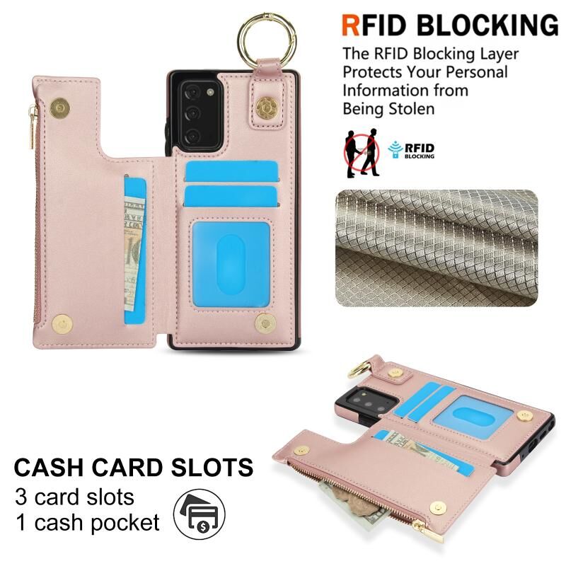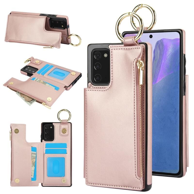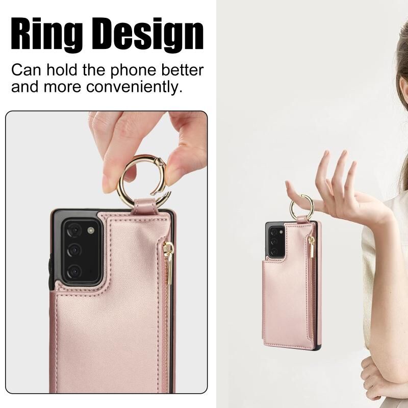 Για Samsung Galaxy Note20 RFlD Anti-theft Διπλό πόρπη δαχτυλίδι φερμουάρ κάρτα υπόθεση τηλεφώνου (Rose Gold)