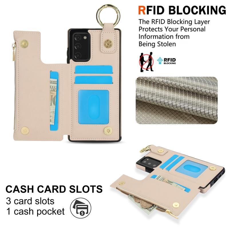 Για Samsung Galaxy Note20 RFlD Anti-theft Διπλό πόρπη δαχτυλίδι φερμουάρ κάρτα υπόθεση τηλεφώνου (λευκό)