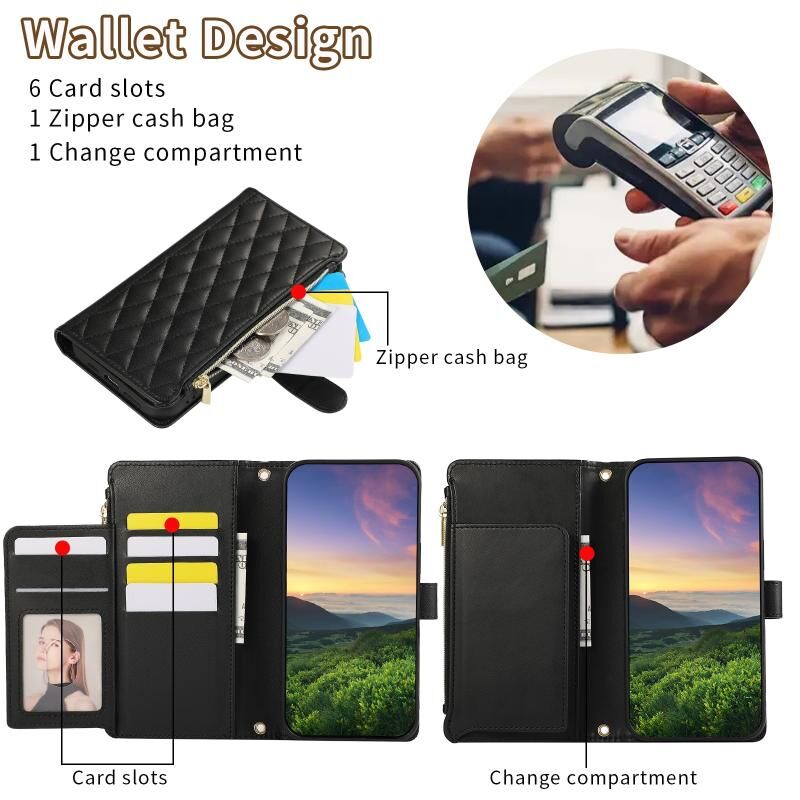 5. Λειτουργία πορτοφολιού πολλαπλών καρτών: Πολλαπλές υποδοχές καρτών και τσέπες πορτοφολιού με φερμουάρ, θήκες μετρητών μπορούν να αποθηκεύσουν τις πιστωτικές σας κάρτες και τα καθημερινά μικρά χαρτονομίσματα.