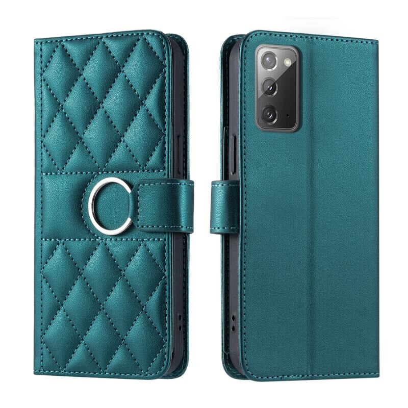 For Samsung Galaxy Note20 Ring Buckle Rhombic Leather Phone Case(Green)