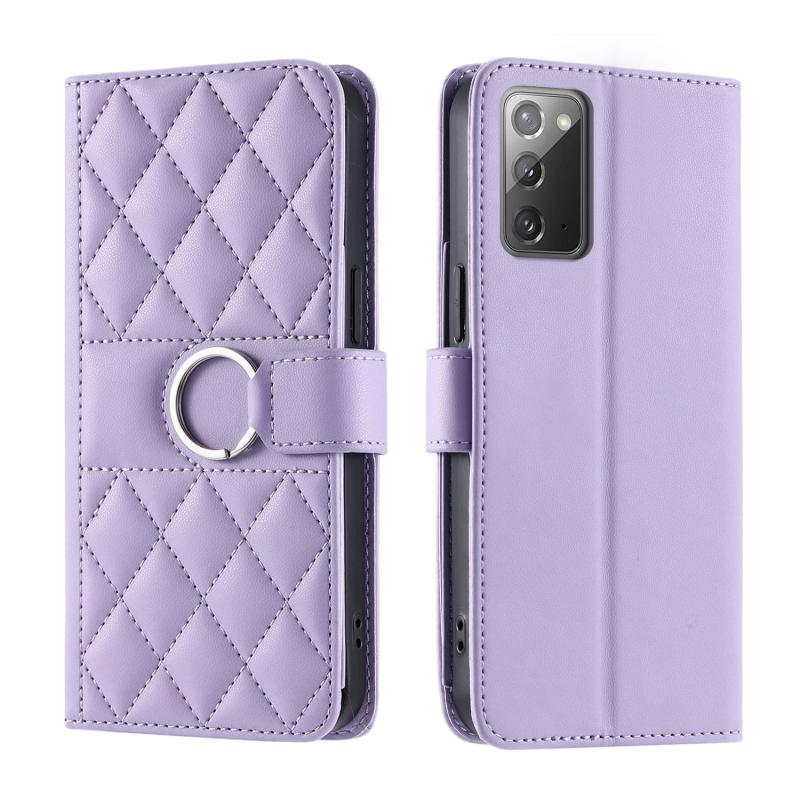 For Samsung Galaxy Note20 Ring Buckle Rhombic Leather Phone Case(Purple)