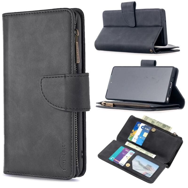 Για Samsung Galaxy Note20 Skin Feel Αποσπώμενο μαγνητικό φερμουάρ Οριζόντια Flip PU δερμάτινη θήκη με υποδοχές για πολλαπλές κάρτες & θήκη & πορτοφόλι & κορνίζα & κορδόνι φωτογραφιών(Μαύρο)