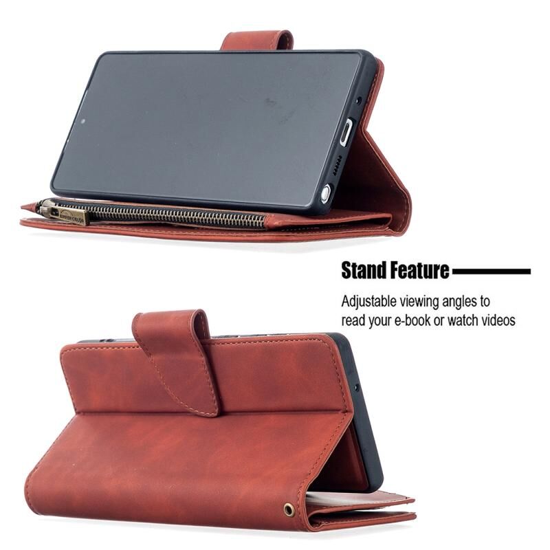 Για Samsung Galaxy Note20 Skin Feel Αποσπώμενο μαγνητικό φερμουάρ Οριζόντια Flip PU δερμάτινη θήκη με υποδοχές για πολλαπλές κάρτες & θήκη & πορτοφόλι & κορνίζα & κορδόνι (καφέ)