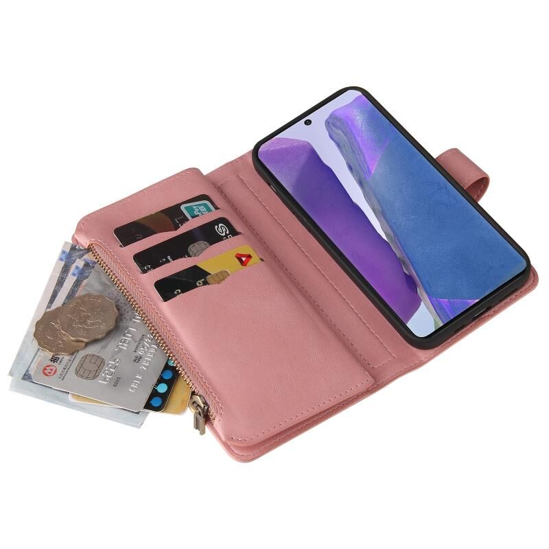 Για Samsung Galaxy Note20 δέρμα αίσθηση PU + TPU οριζόντια Flip δερμάτινη θήκη με θήκη & 15 κάρτες Slot & πορτοφόλι & φερμουάρ τσέπη & Lanyard (ροζ)