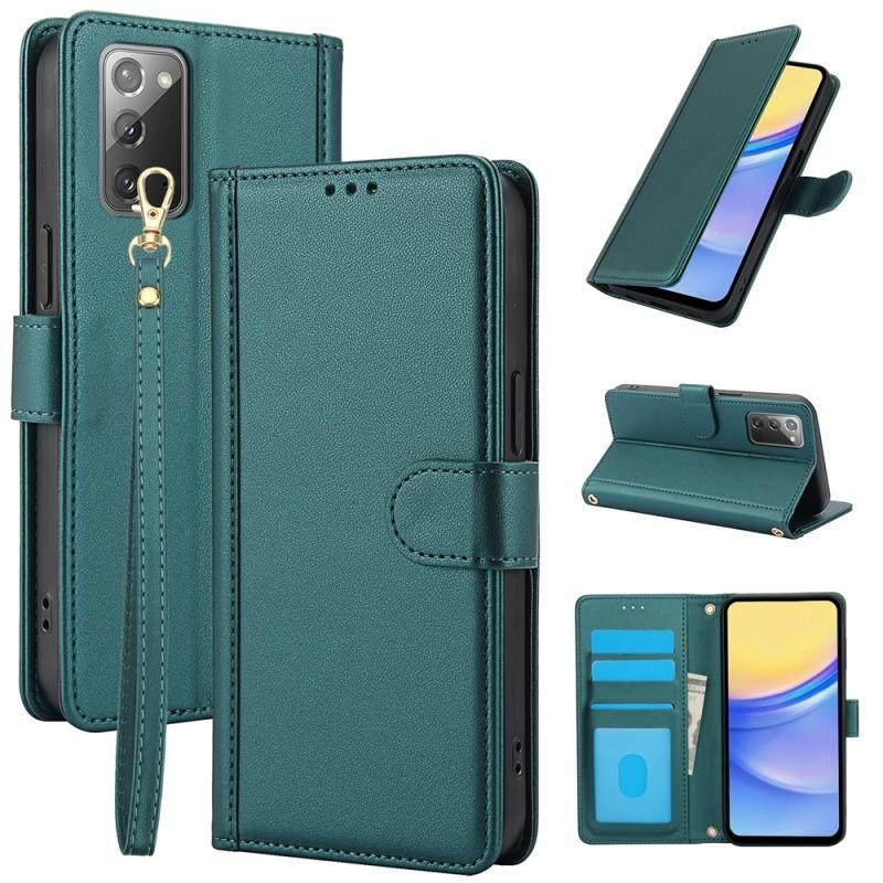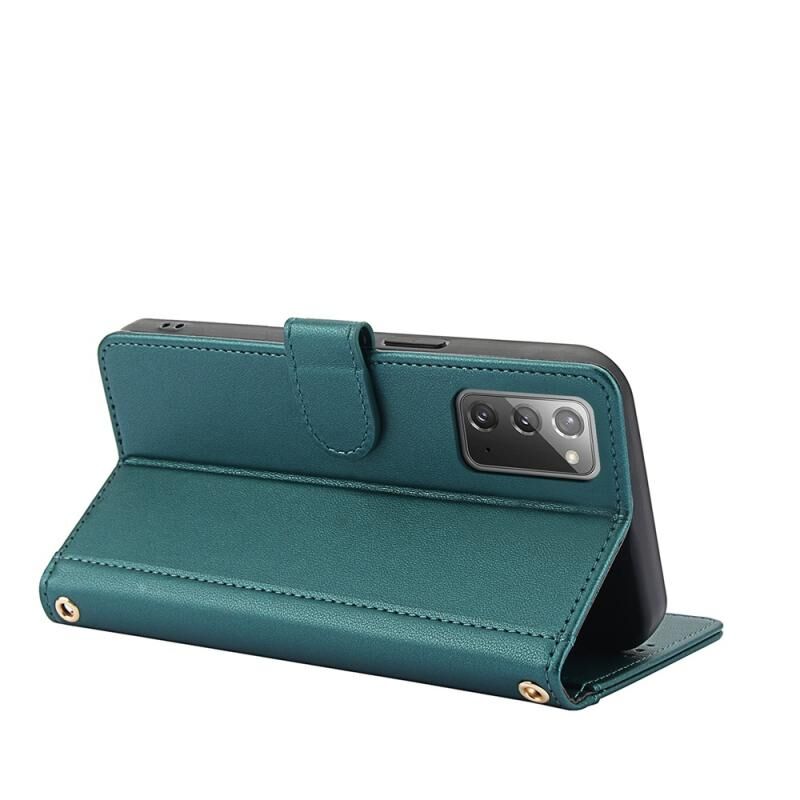 Για Samsung Galaxy Note20 δέρμα αίσθηση καθαρό χρώμα κάρτα υποδοχές δερμάτινη θήκη τηλεφώνου με διπλή κορδόνι (πράσινο)