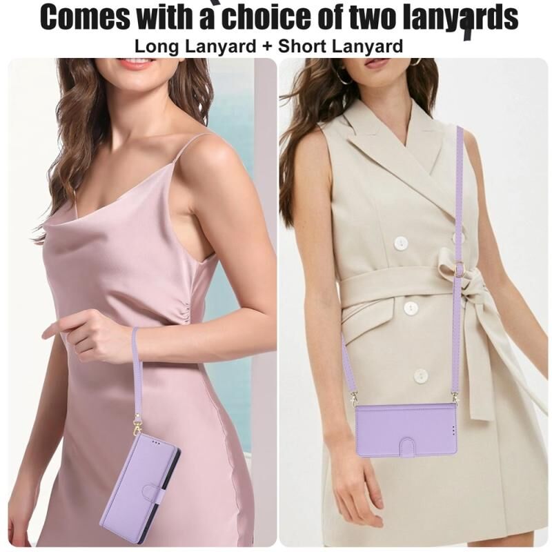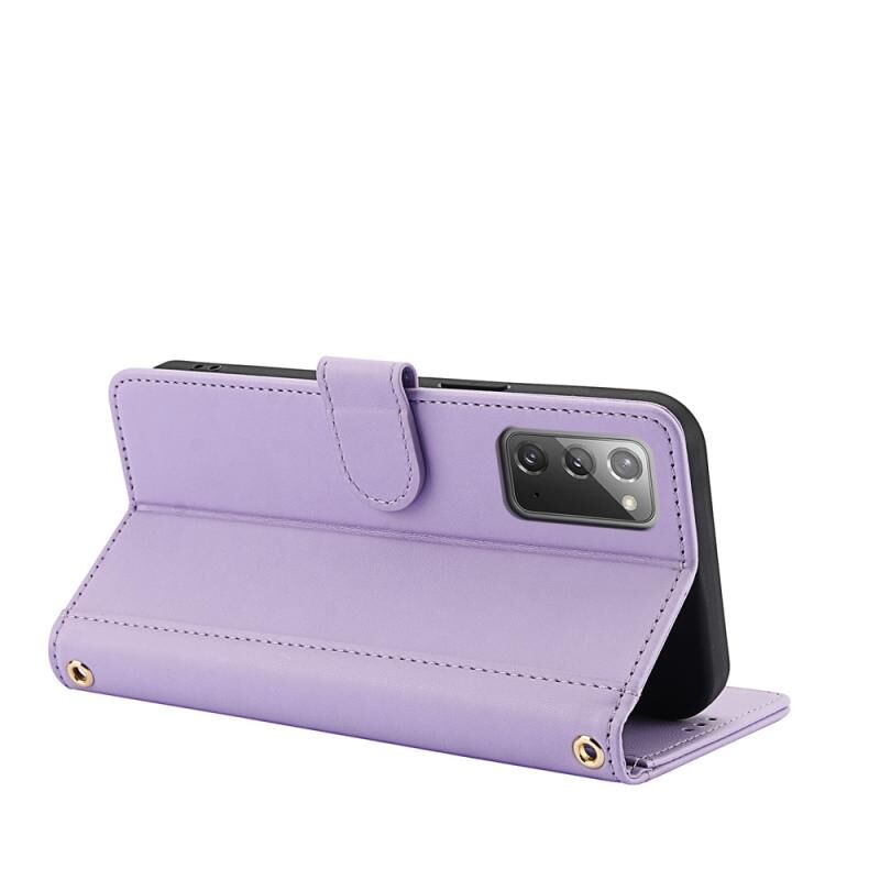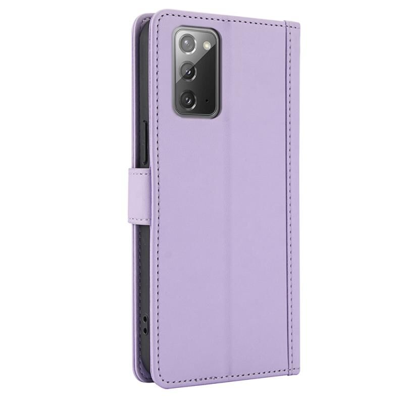Για Samsung Galaxy Note20 δέρμα αίσθηση καθαρό χρώμα κάρτα υποδοχές δερμάτινη θήκη τηλεφώνου με διπλή κορδόνι (μωβ)
