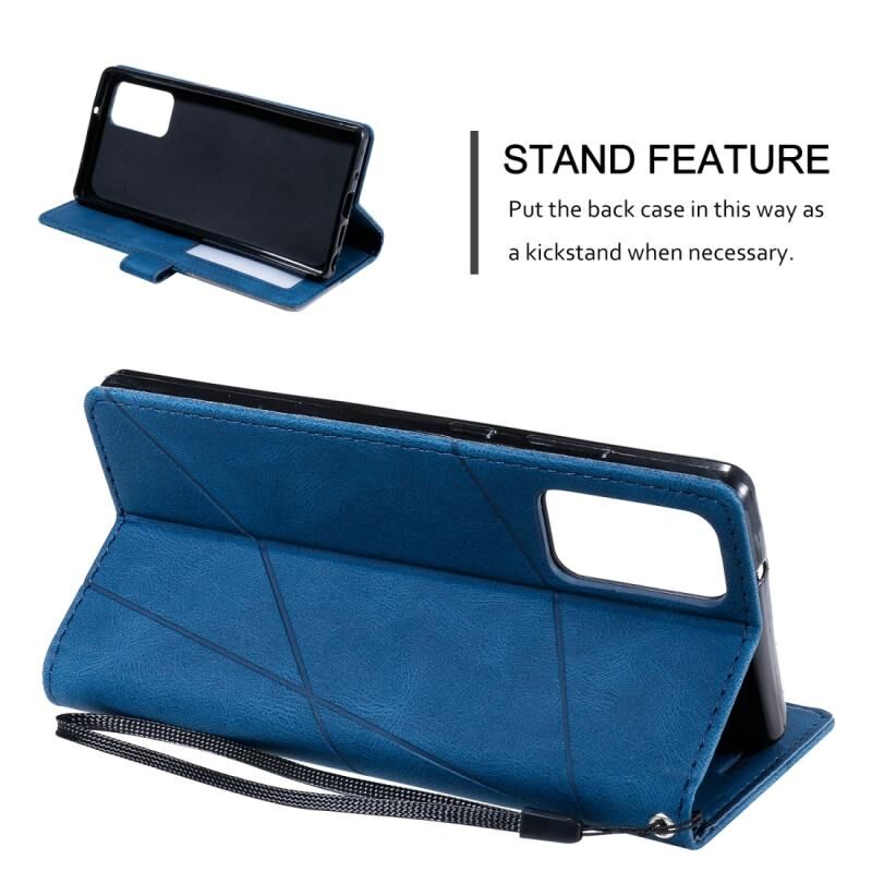 Για Samsung Galaxy Note20 δέρμα αίσθηση Splicing οριζόντια Flip δερμάτινη θήκη με υποδοχή & υποδοχές για κάρτες & πορτοφόλι & κορνίζα φωτογραφιών (μπλε)
