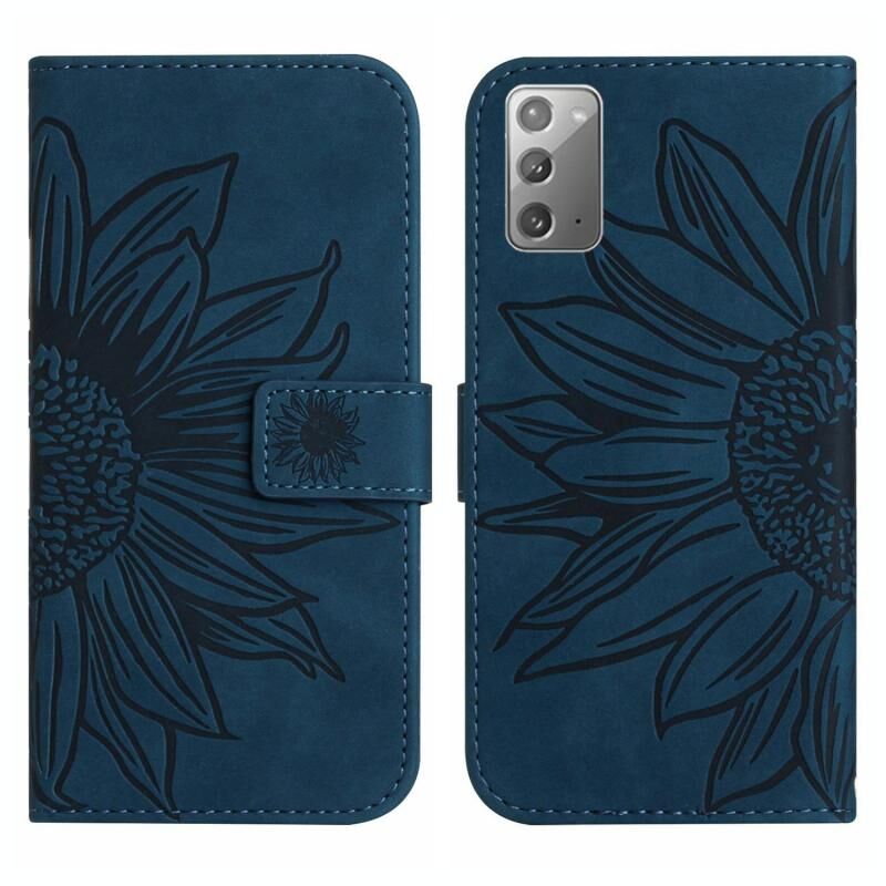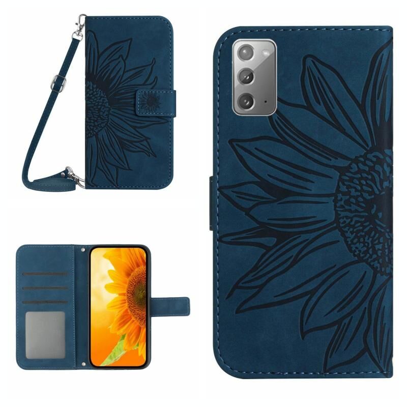 Για το Samsung Galaxy Note20 δέρμα αίσθηση Sun Flower μοτίβο Flip δέρμα τηλέφωνο υπόθεση με κορδόνι (μπλε)
