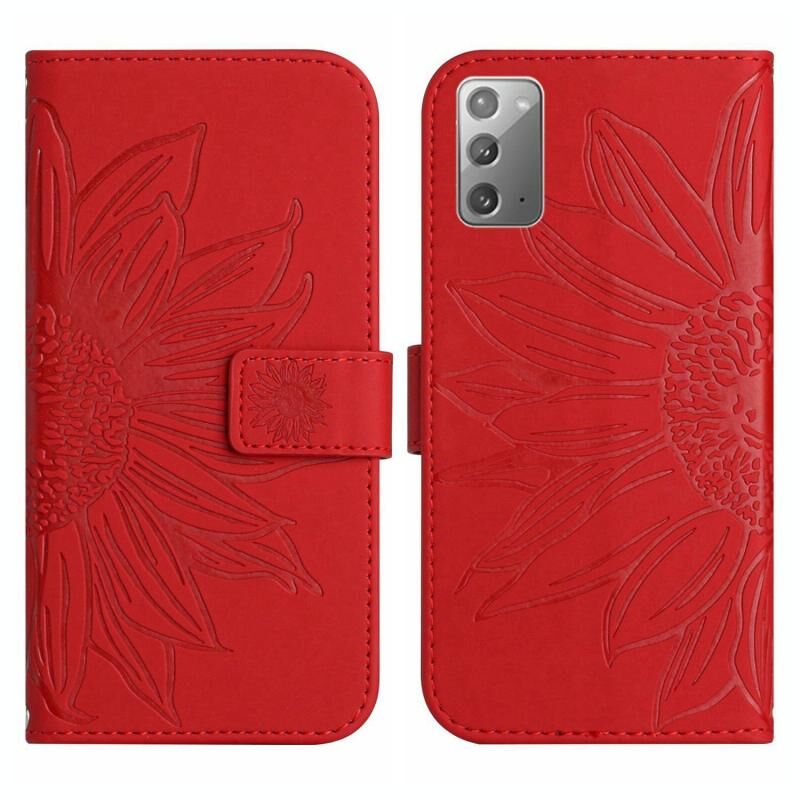 Για το Samsung Galaxy Note20 δέρμα αίσθηση Sun Flower μοτίβο Flip δέρμα τηλέφωνο υπόθεση με κορδόνι (κόκκινο)
