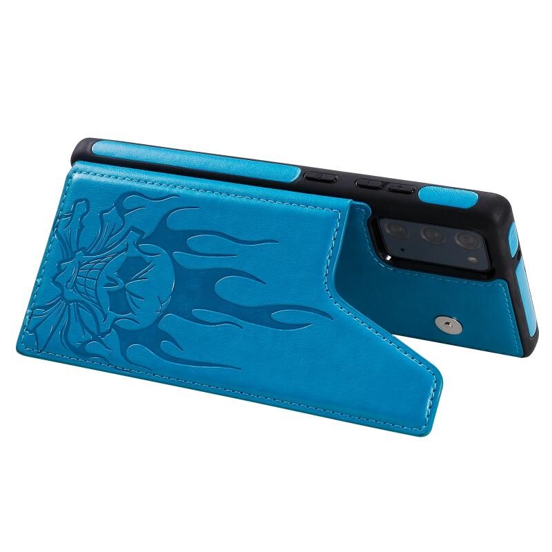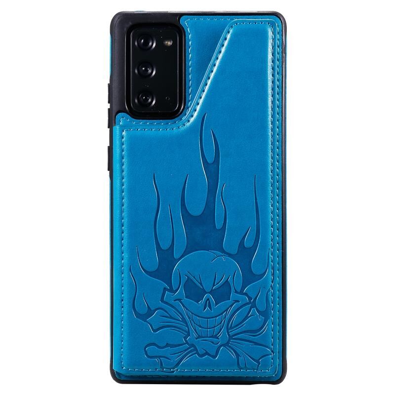 Θήκη προστασίας για Samsung Galaxy Note20 με ανάγλυφο σχέδιο κρανίου, αντικραδασμική, με βάση στήριξης & θήκες καρτών & πορτοφόλι (Μπλε)